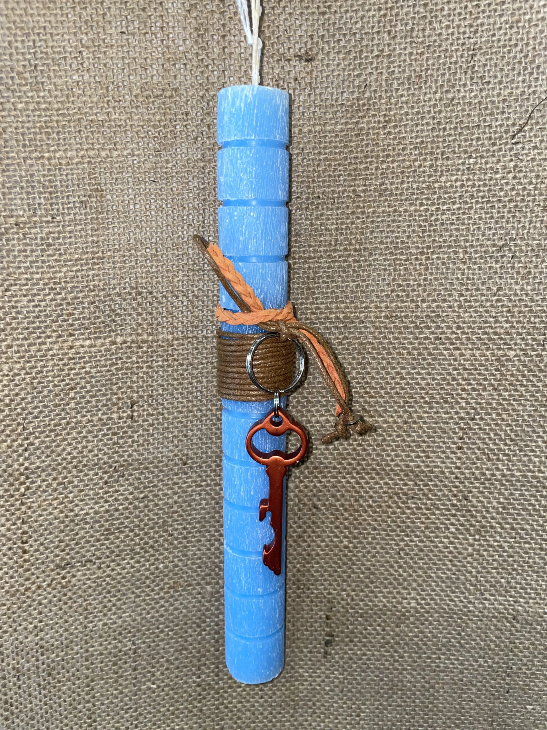 Γαλάζια στρογγυλή αρωματική λαμπάδα με μπρελόκ/ανοιχτήρι κλειδί (Munkees)