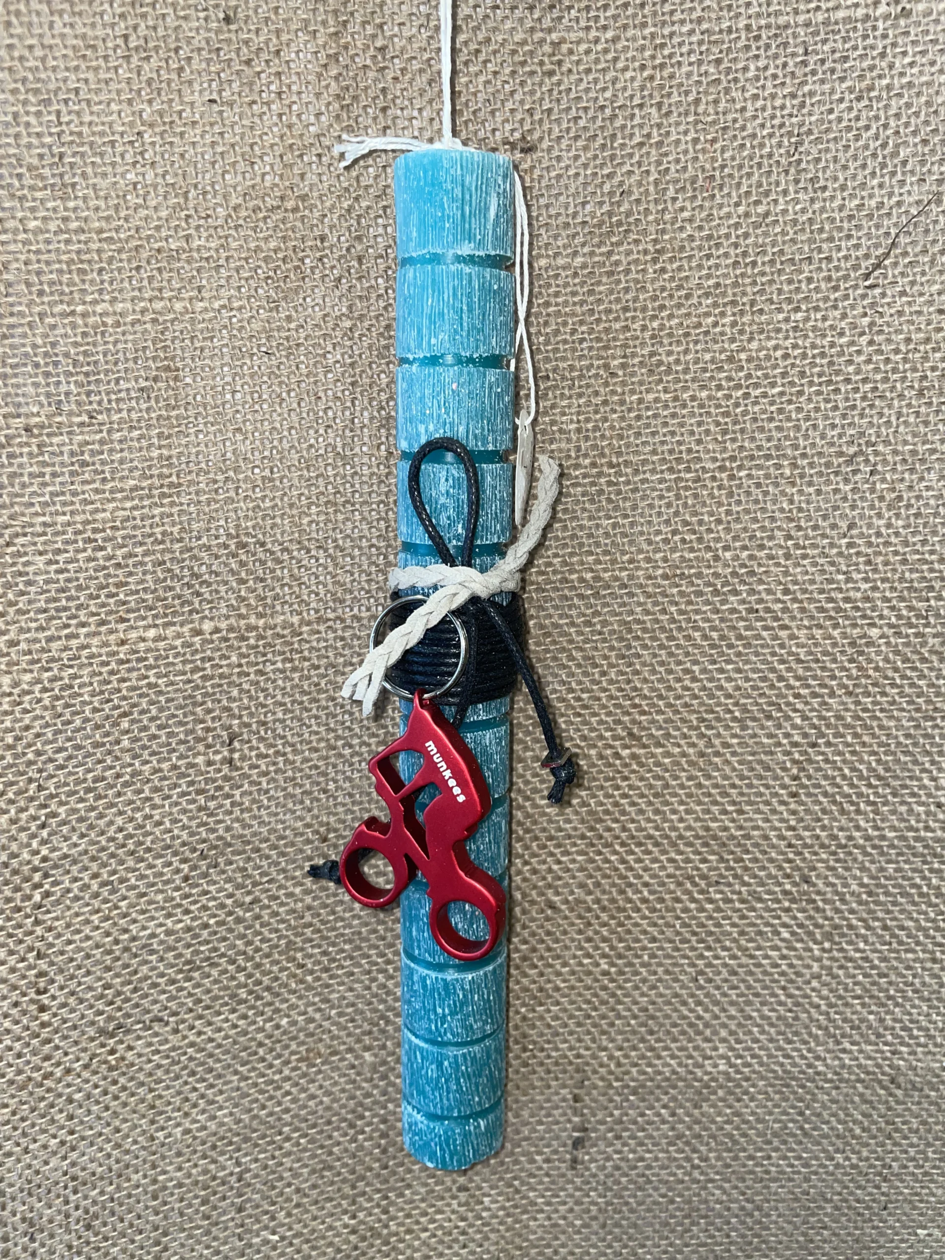 Γαλάζια στρογγυλή αρωματική λαμπάδα με μπρελόκ ποδηλάτης (Munkees)