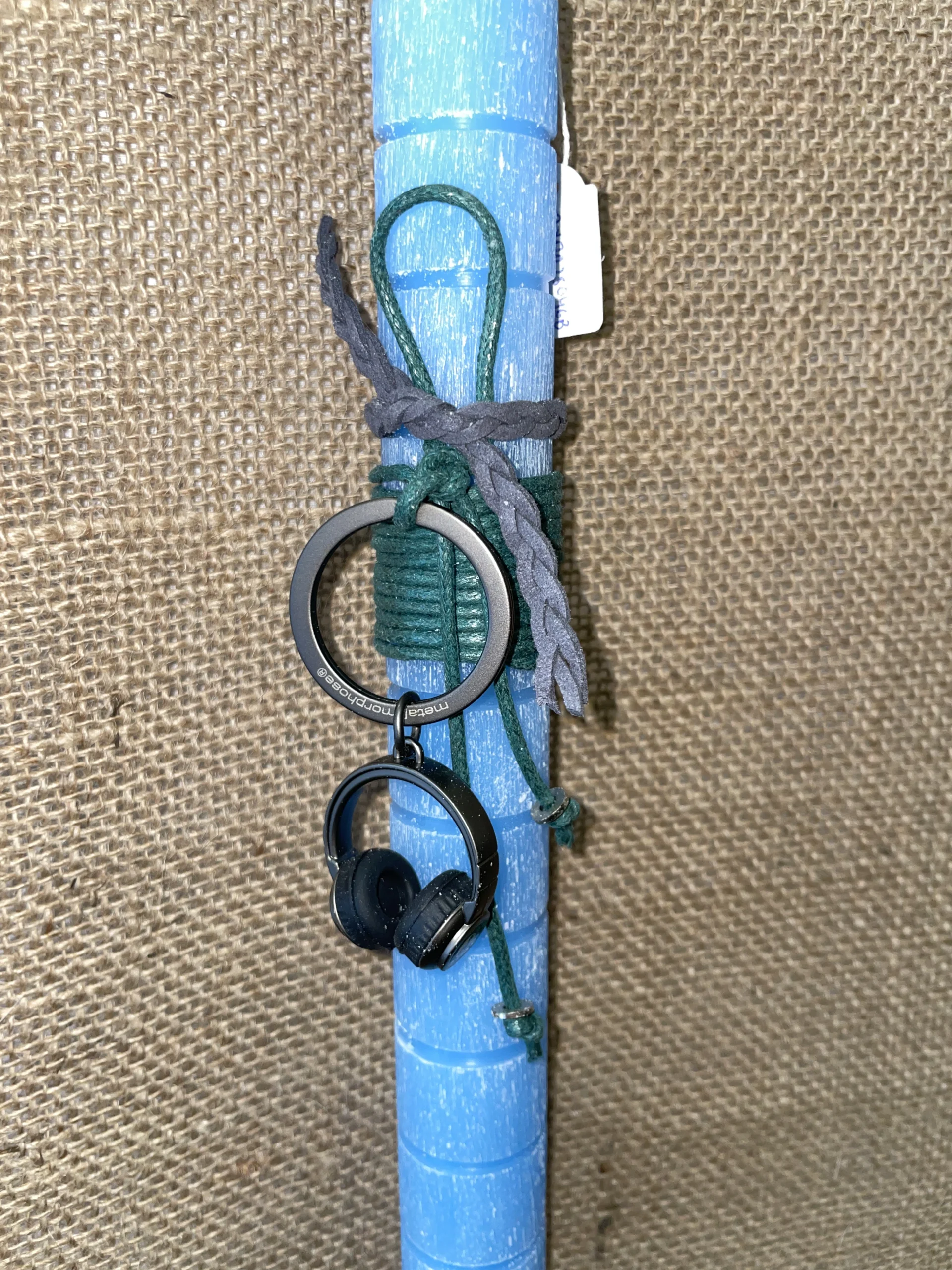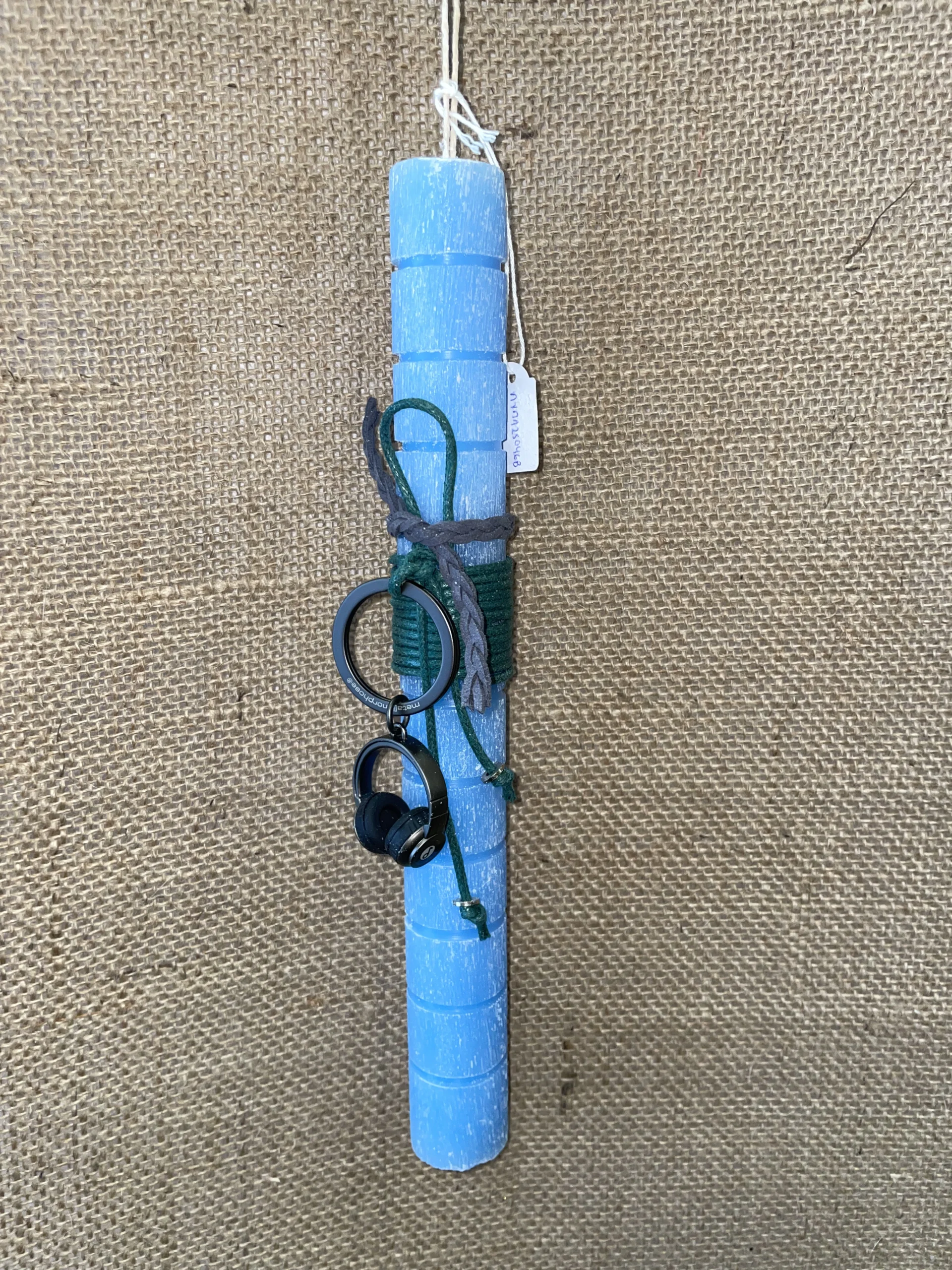 Γαλάζια στρογγυλή αρωματική λαμπάδα με μπρελόκ ακουστικά(headphones) Metalmorphose