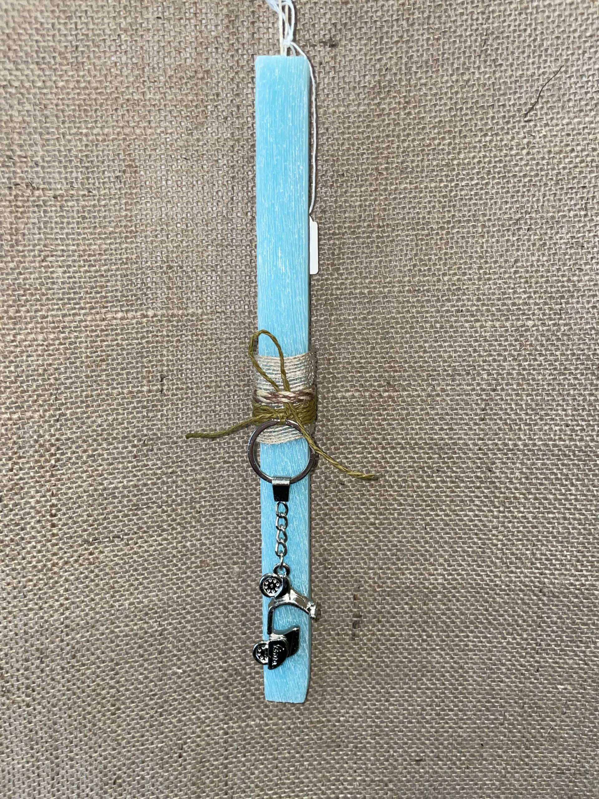 Γαλάζια τετράγωνη αρωματική λαμπάδα με μεταλλικό μπρελόκ Vespa