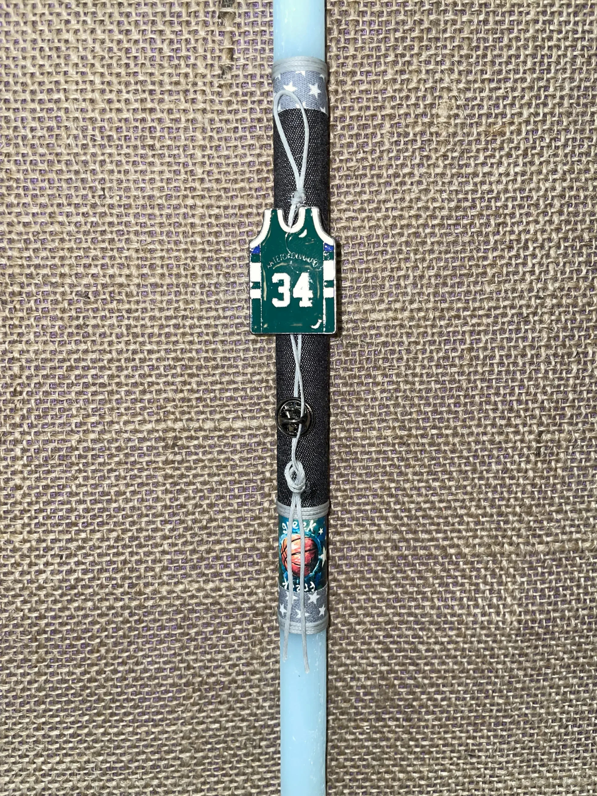 Γαλάζιο στρογγυλό λαμπαδάκι με φανέλα μπάσκετ ”Αντετοκούμπο 34”