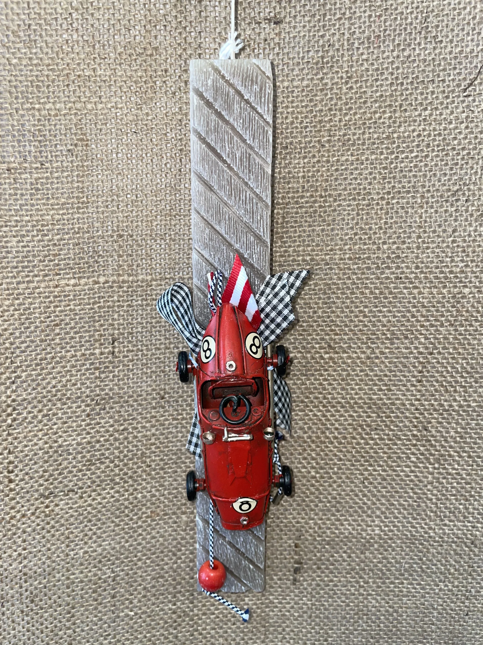 Ετικέτα: Γκρι πλακέ με ρίγες αρωματική λαμπάδα με διακοσμητική Vintage Φόρμουλα