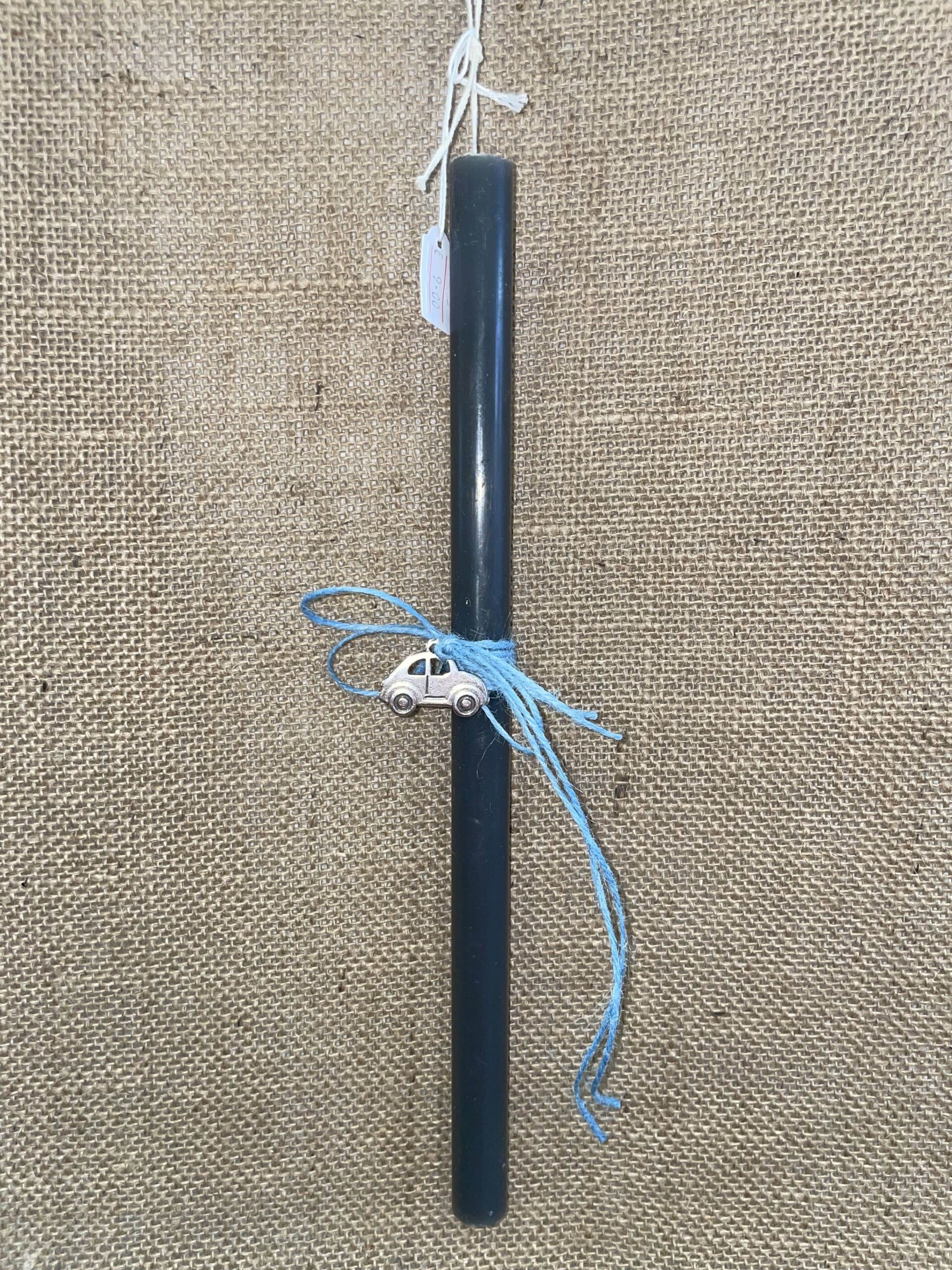Γκρι στρογγυλή λαμπάδα με μεταλλικό αυτοκίνητο