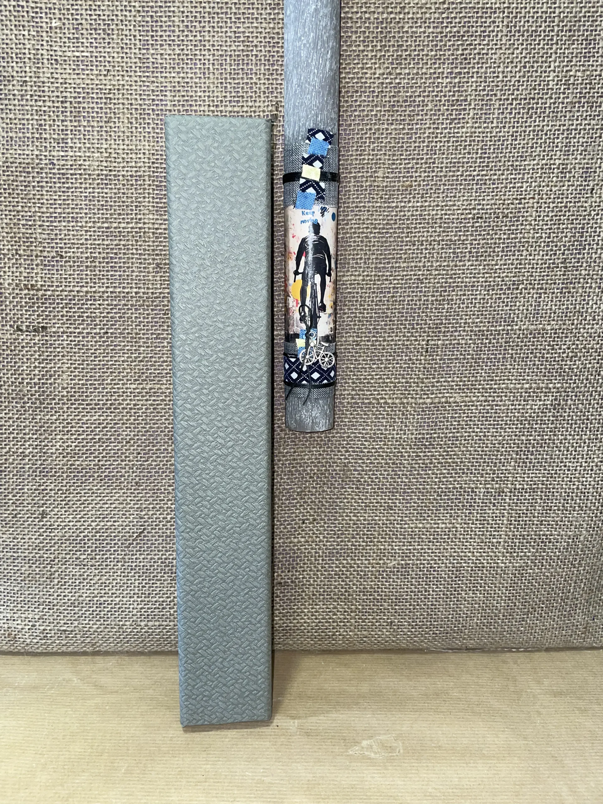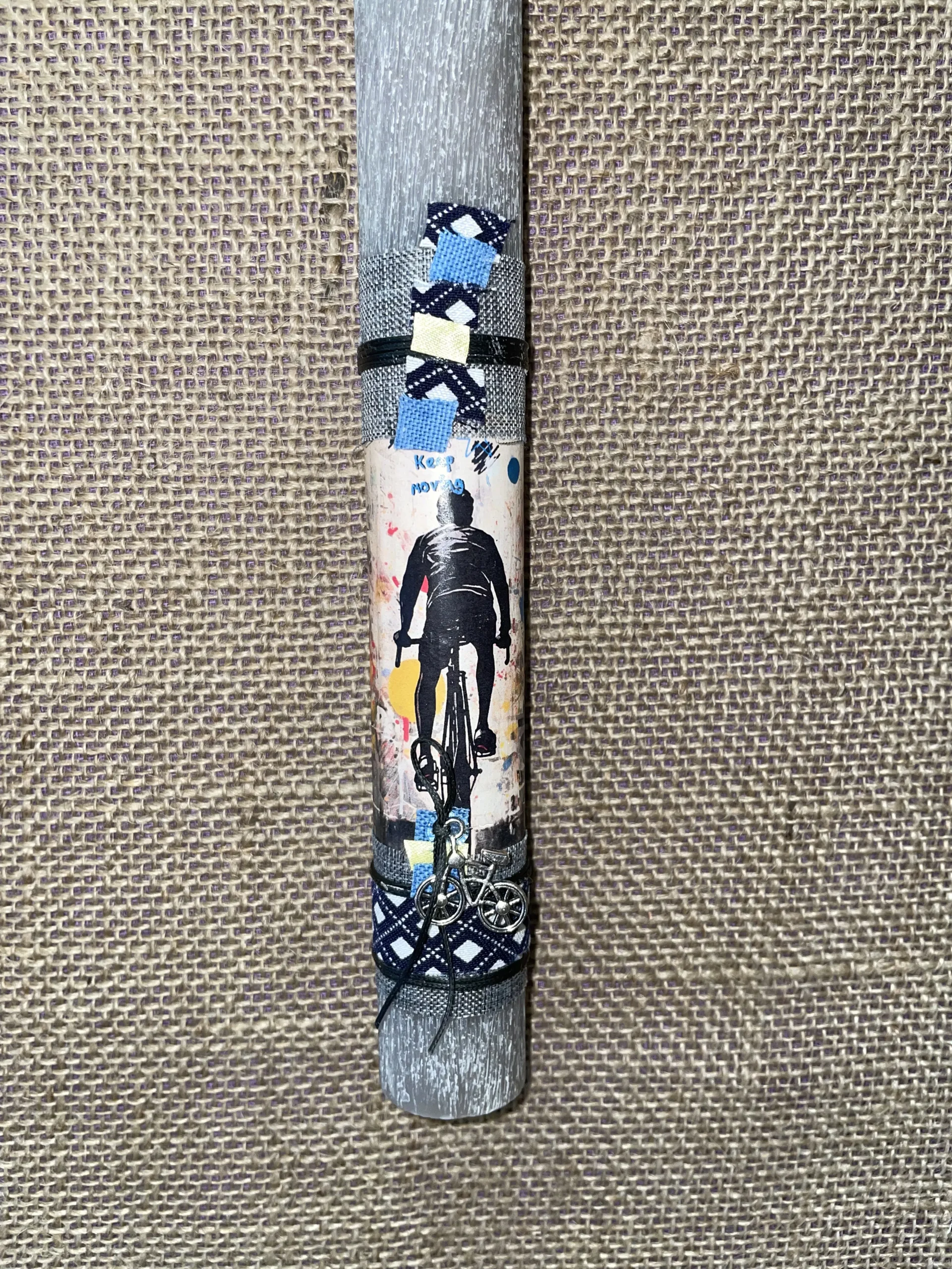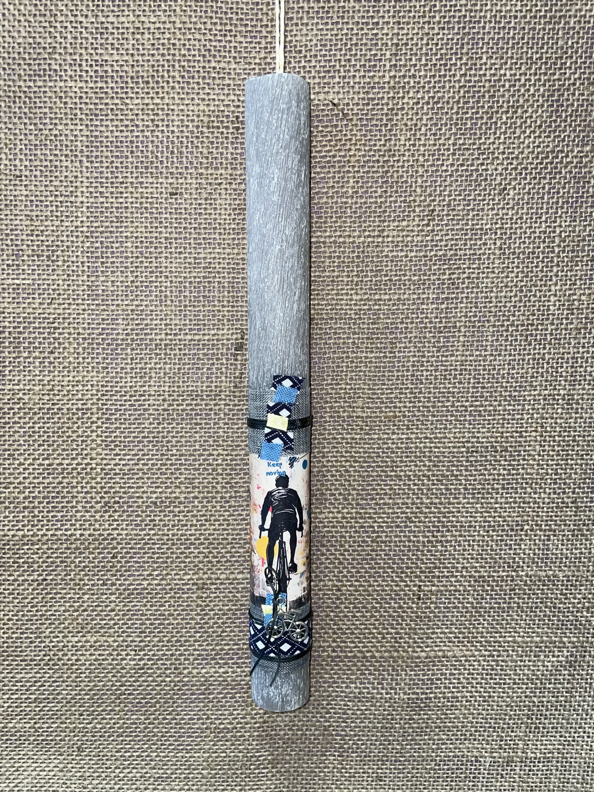 Γκρι στρογγυλή λαμπάδα με ποδηλάτη