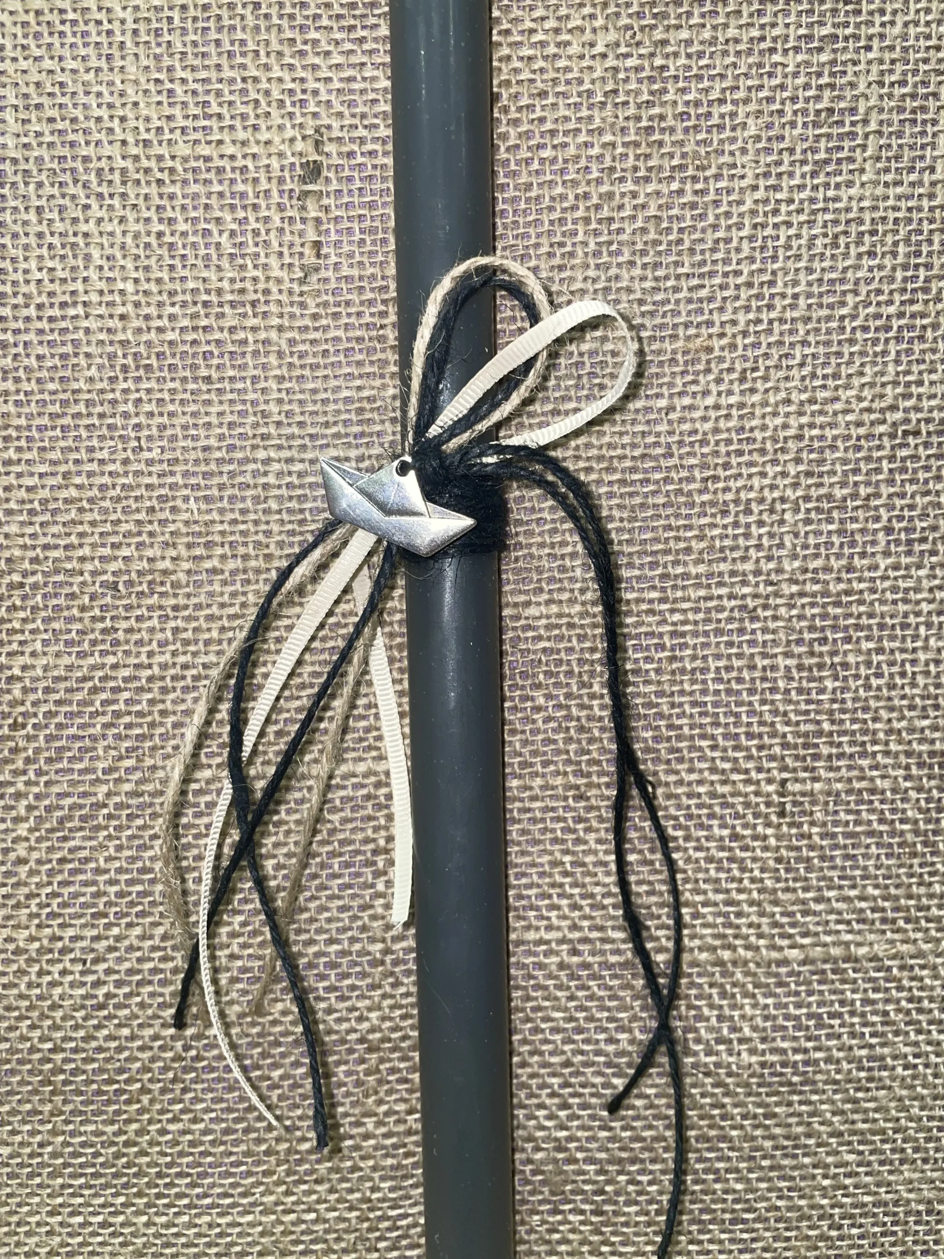 Ετικέτα: Γκρι στρογγυλό λαμπαδάκι με μεταλλικό καράβι