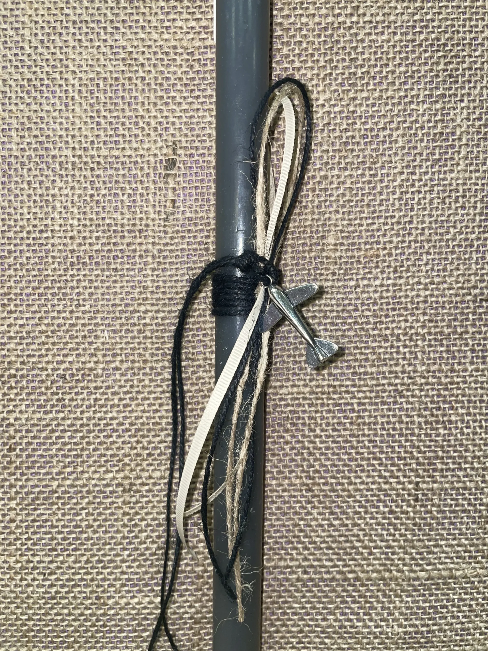 Γκρι στρογγυλό λαμπαδάκι με μεταλλικό αεροπλάνο