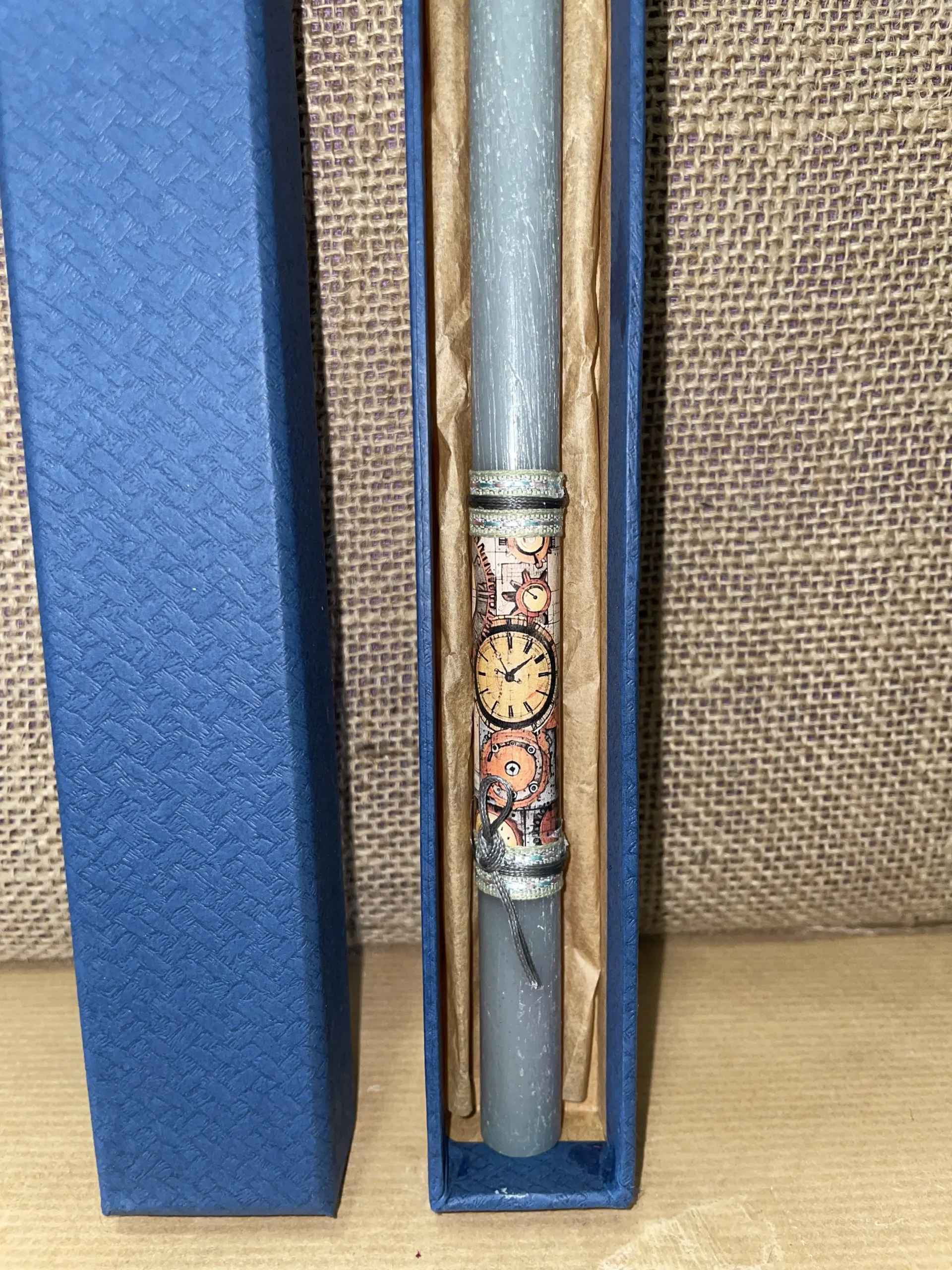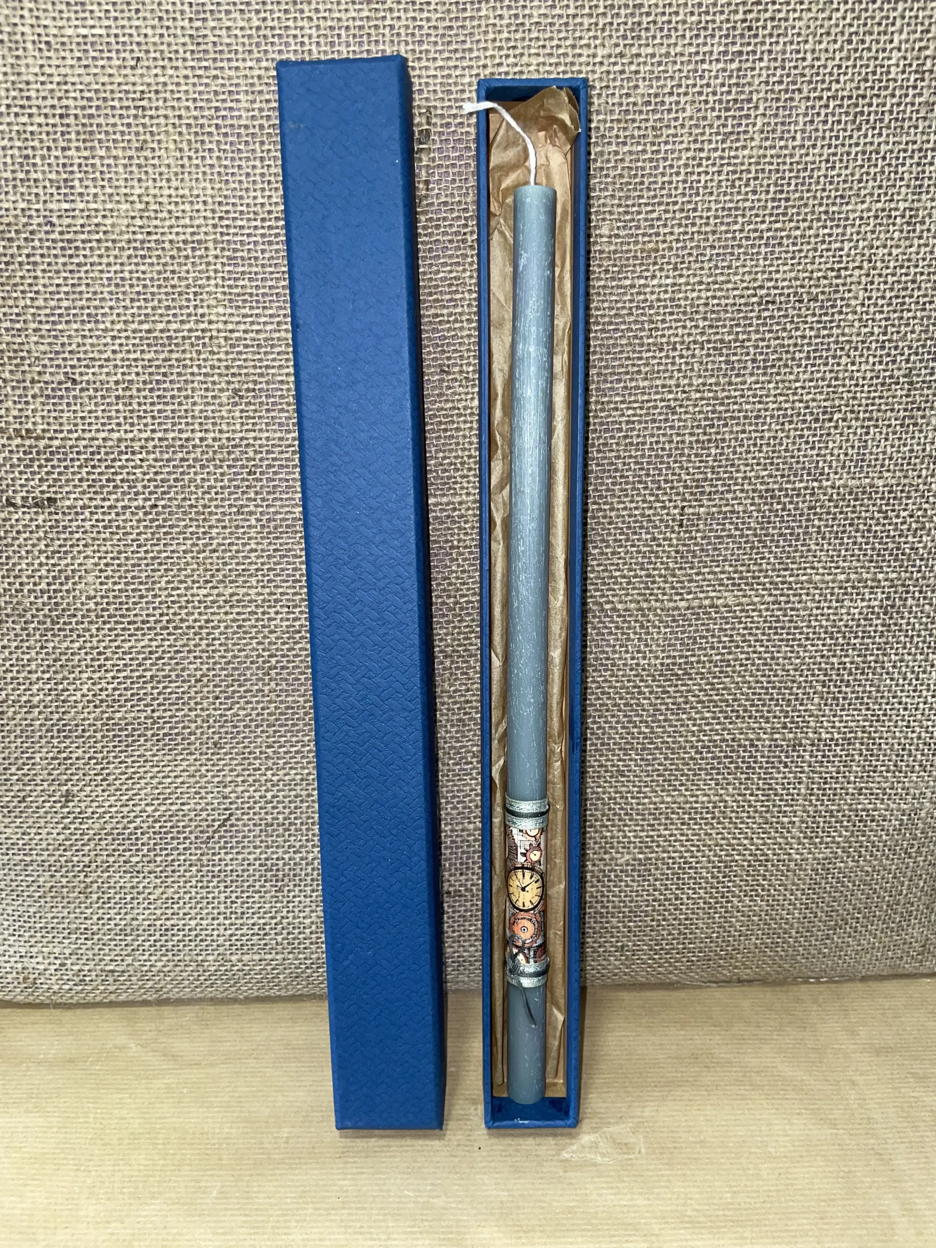 Γκρι στρογγυλό λαμπαδάκι με ρολόϊ