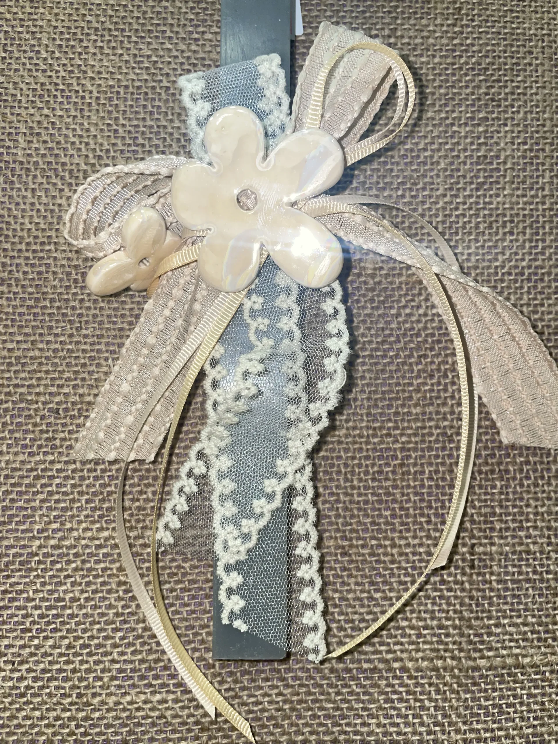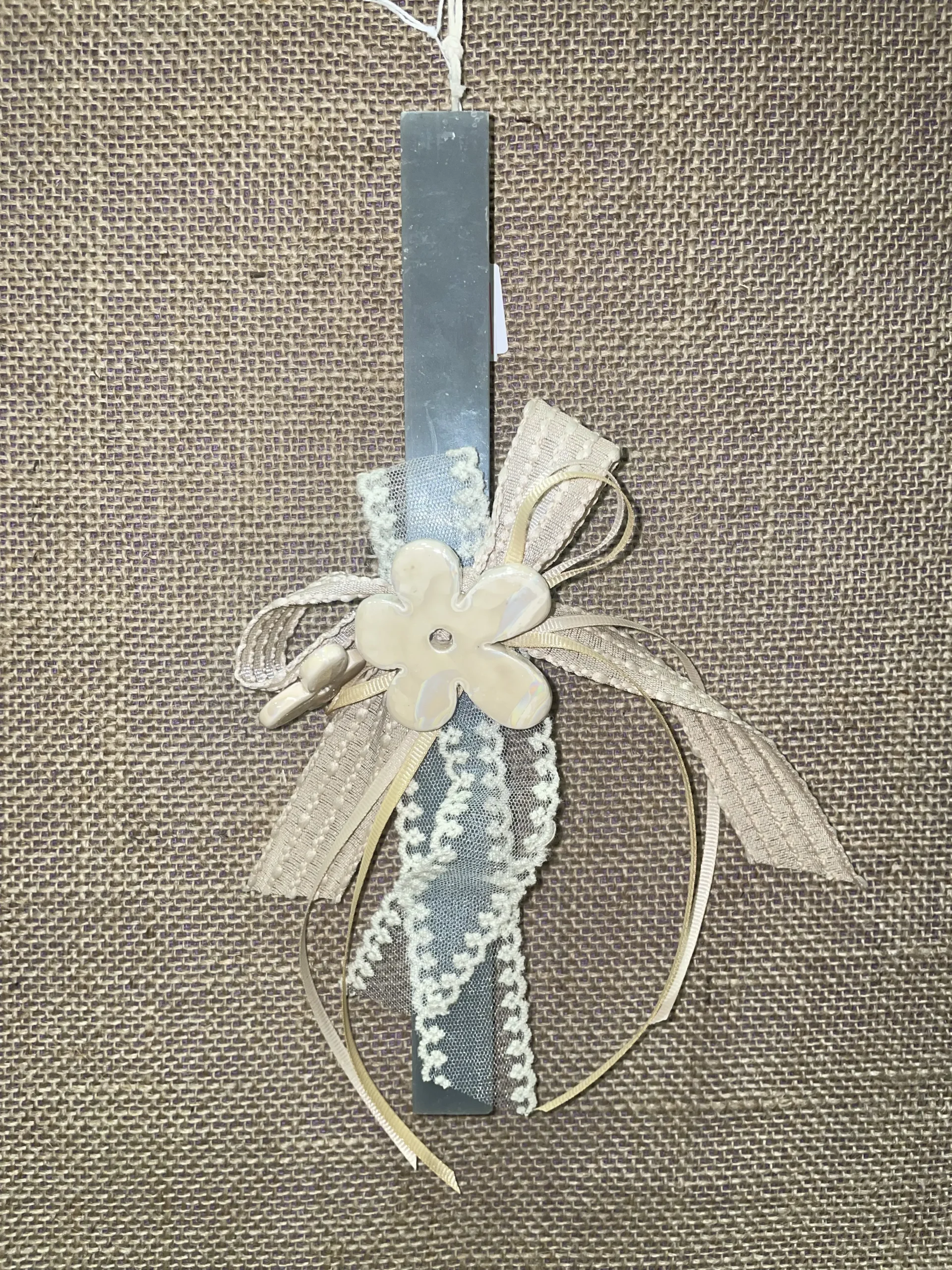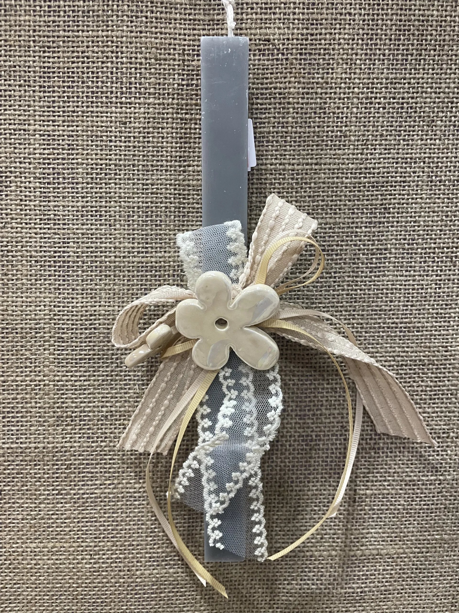 Ετικέτα: Γκρι τετράγωνη αρωματική λαμπάδα με κεραμικές μαργαρίτες