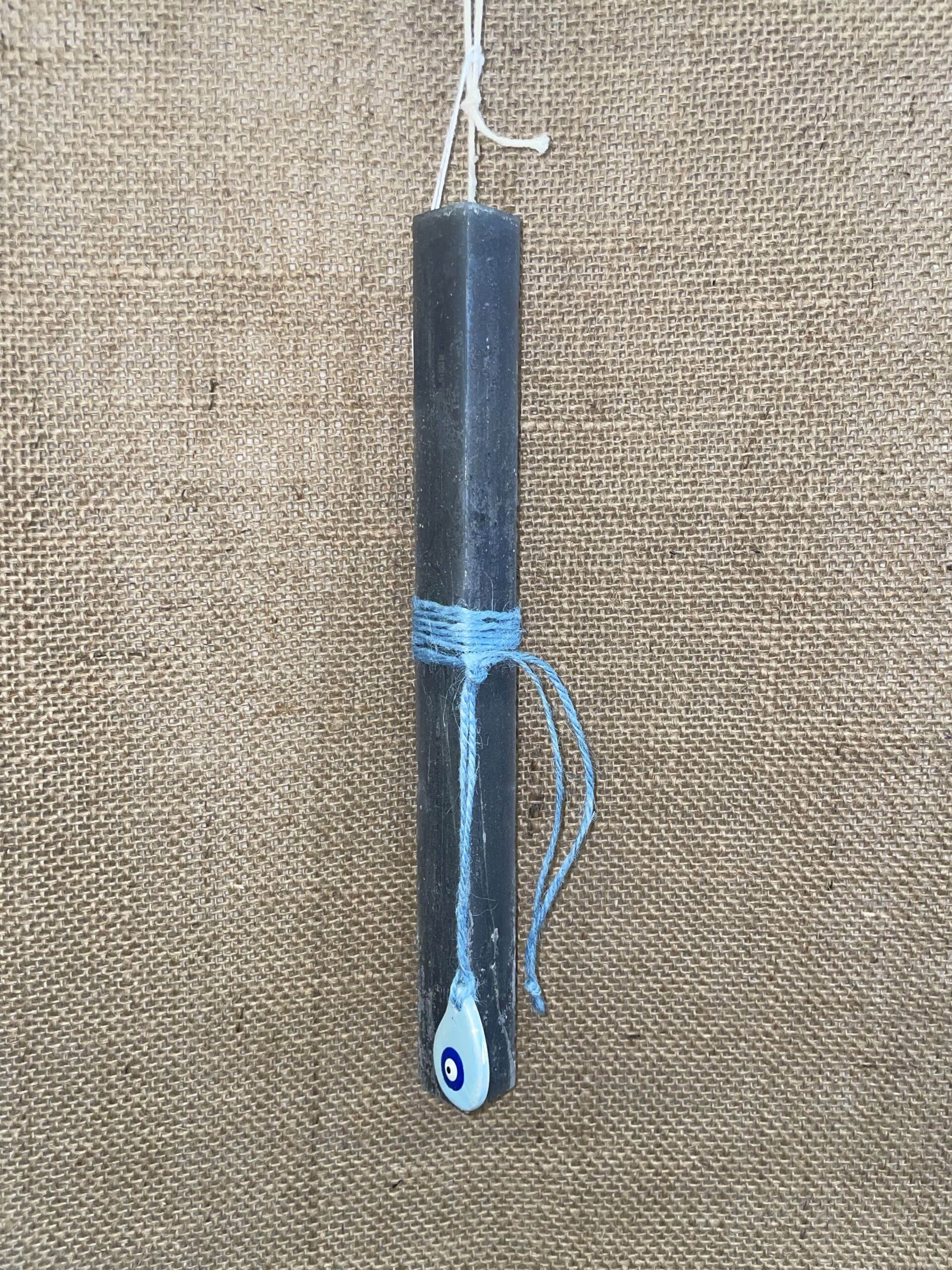 Ετικέτα: Γκρι τετράγωνη λαμπάδα με κεραμικό ματάκι γαλάζιο