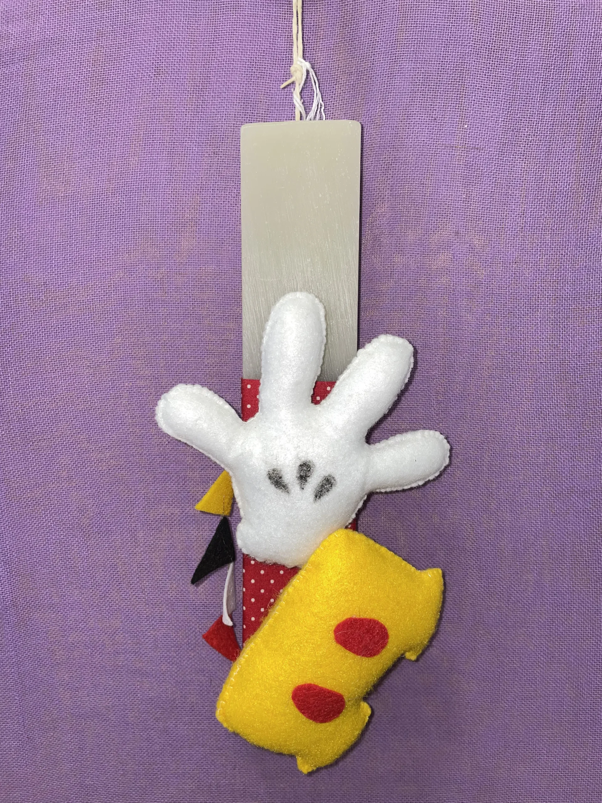 Ετικέτα: Εκρού πλακέ λαμπάδα με τσόχινο Mickey