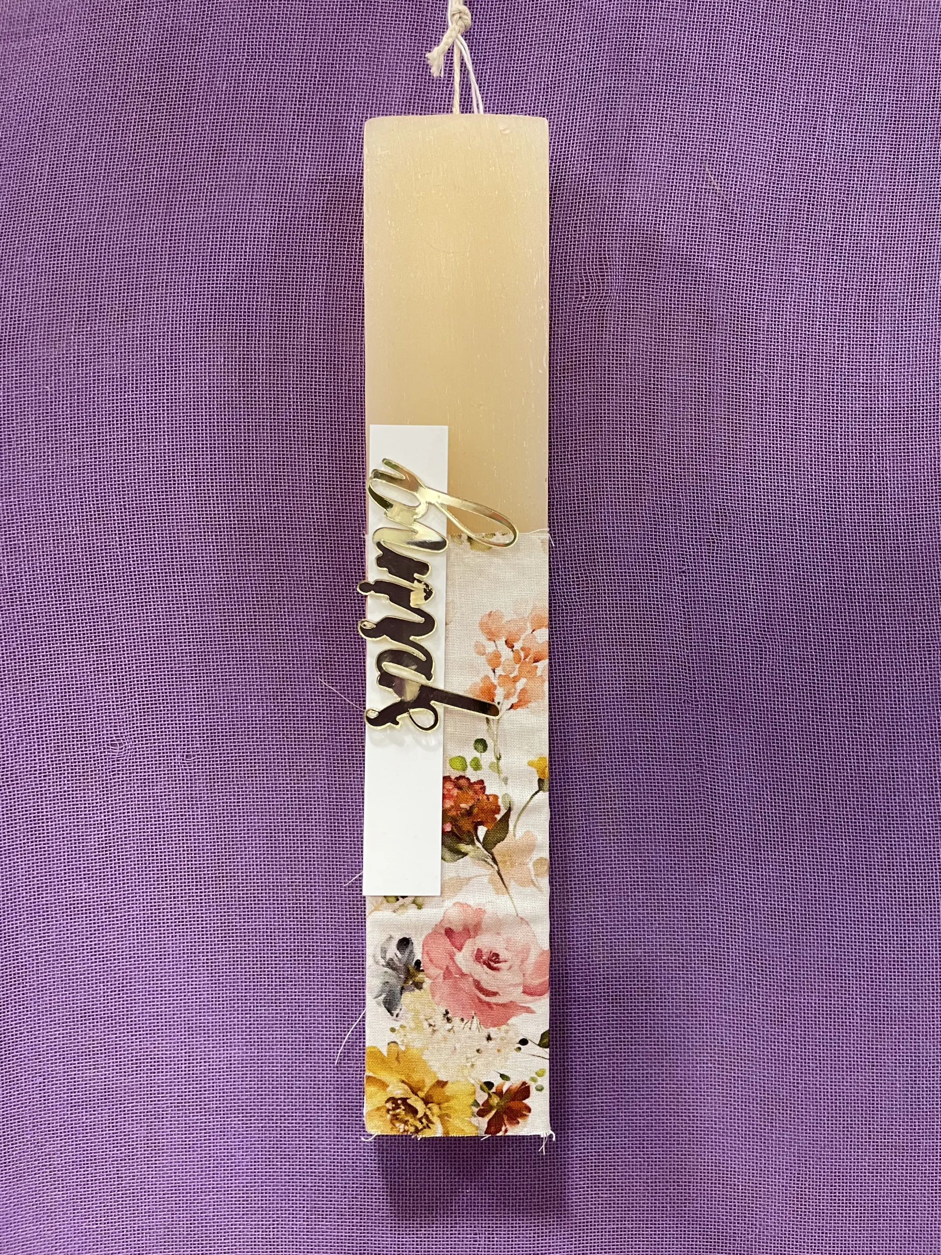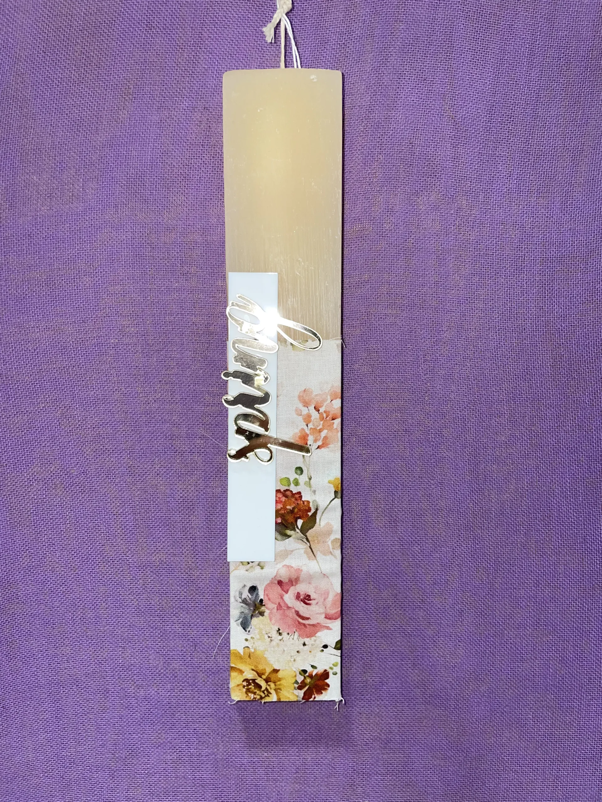 Εκρού πλακέ λαμπάδα με φλοράλ ύφασμα