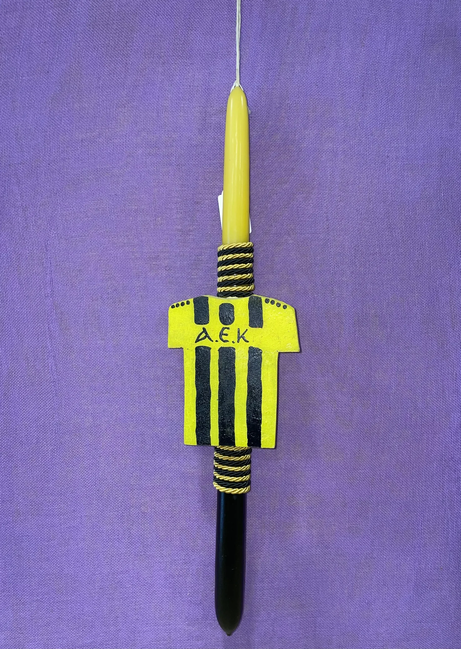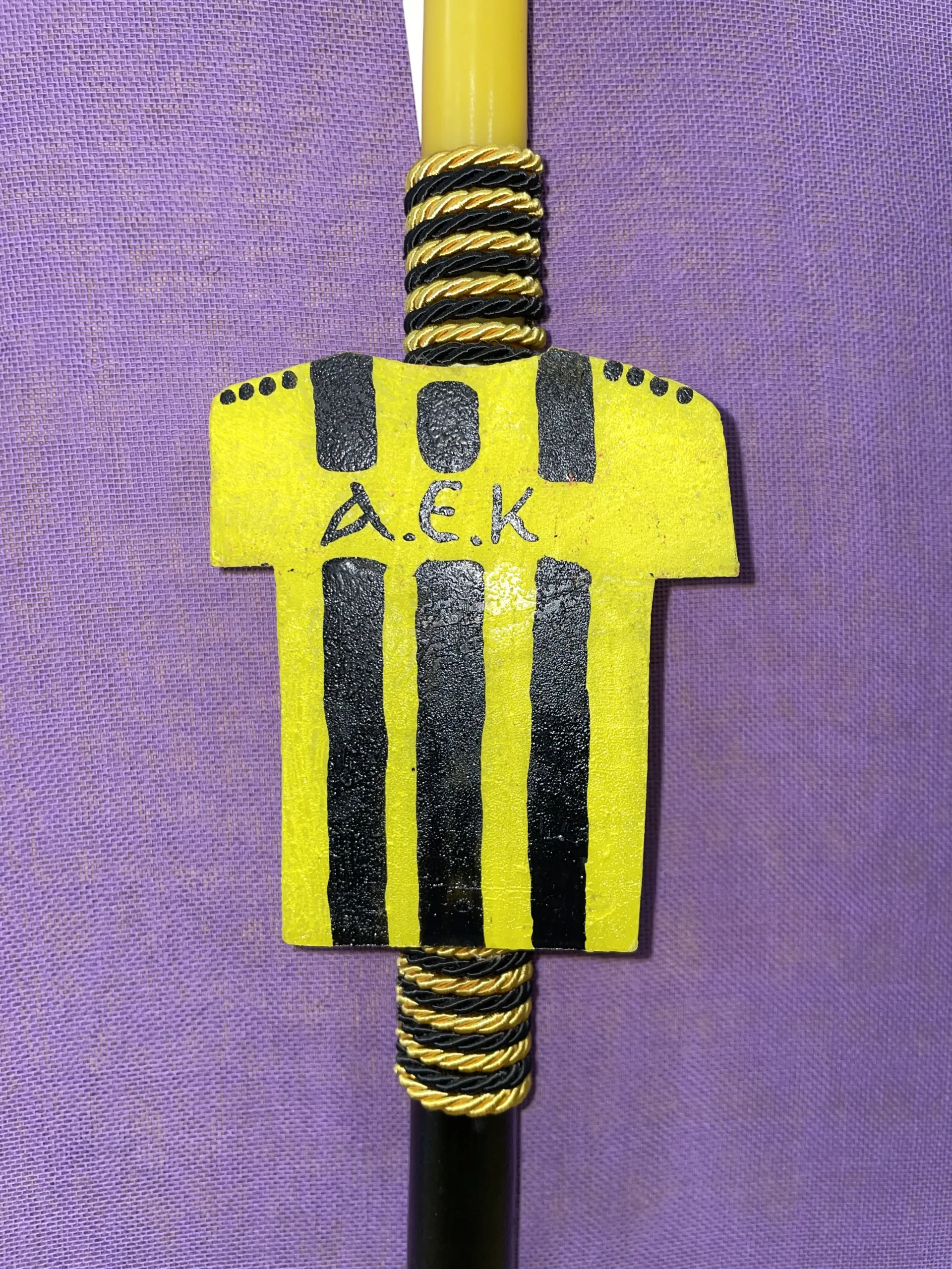 Κίτρινη λαμπάδα με κέρινη φανέλα κίτρινο/μαύρο ΑΕΚ