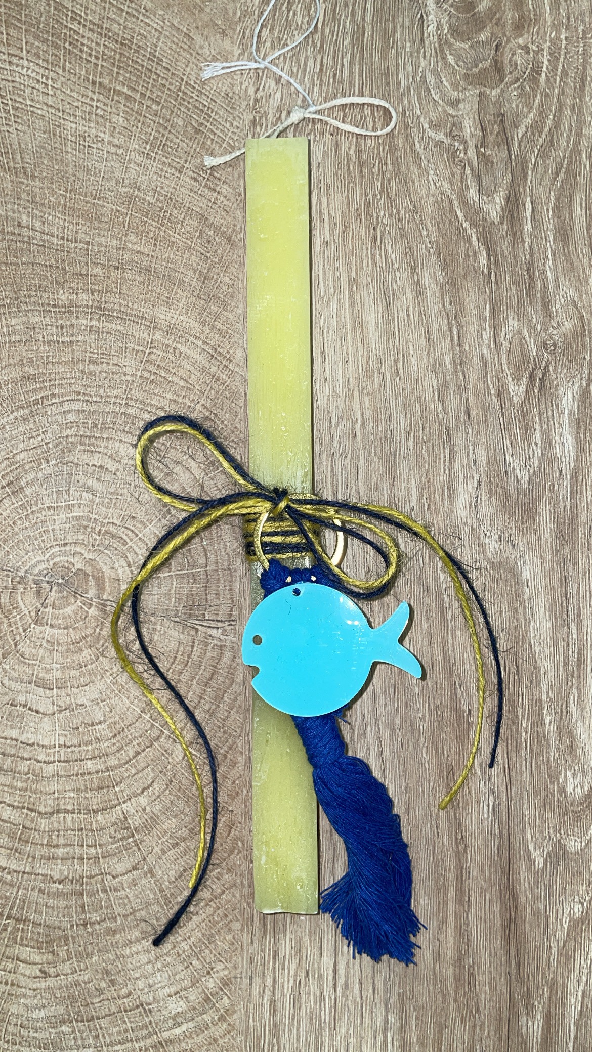 Κίτρινη τετράγωνη λαμπάδα με διακοσμητικό ψαράκι