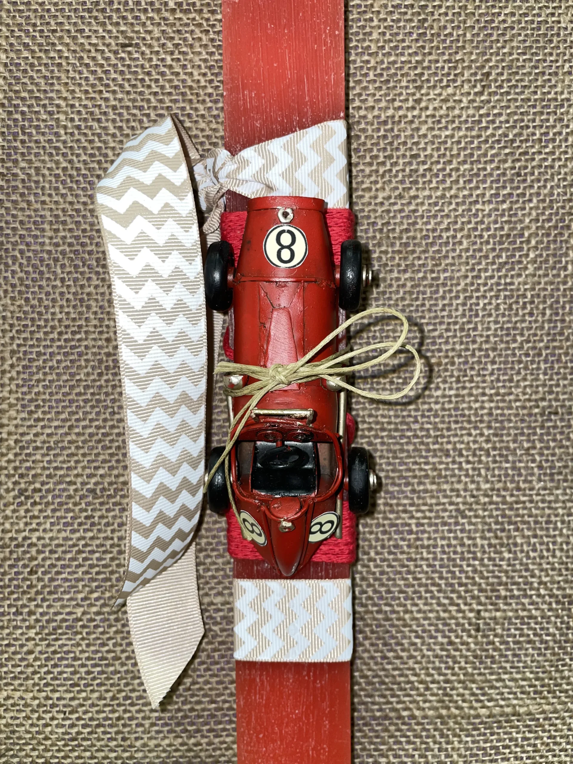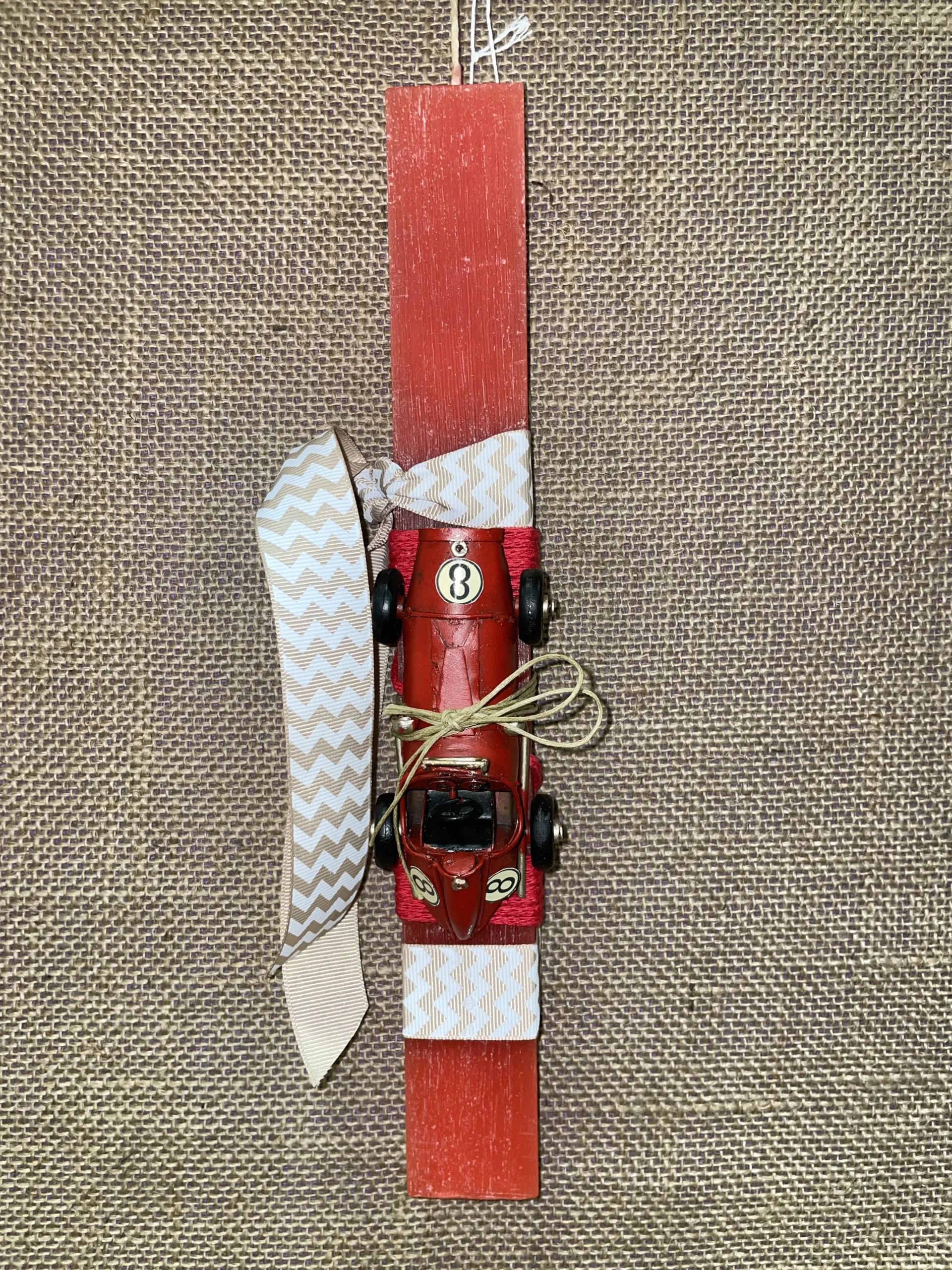 Κόκκινη πλακέ λαμπάδα με κόκκινη vintage formula 1