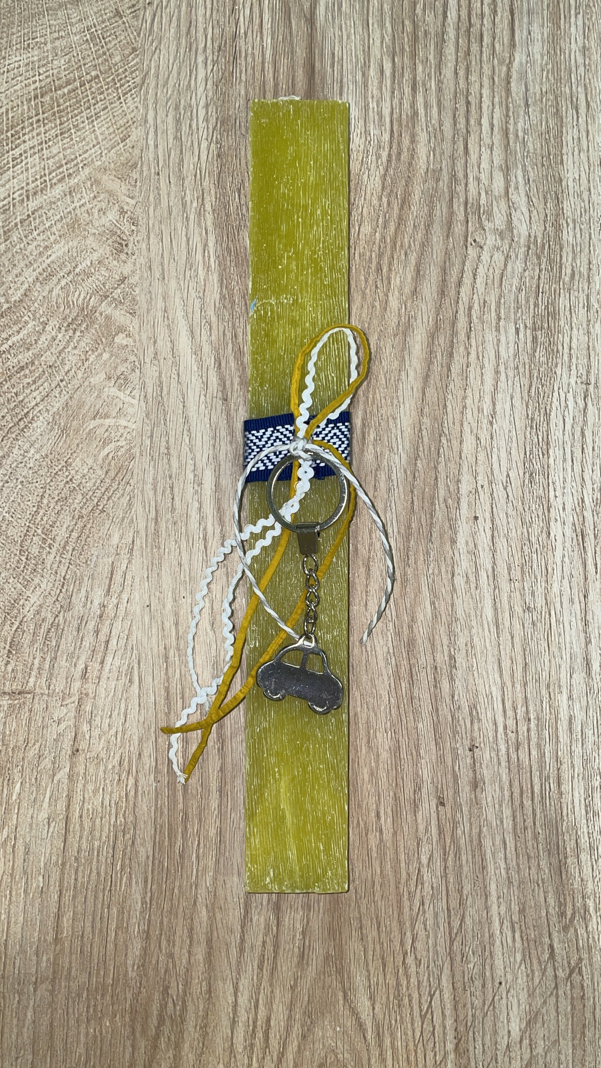 Λαχανί πλακέ λαμπάδα με μεταλλικό μπρελόκ αυτοκίνητο