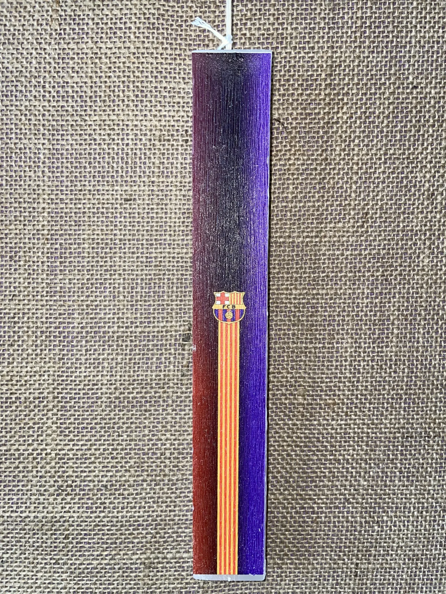 Ετικέτα: Λευκή πλακέ αρωματική λαμπάδα με Μπαρτσελόνα(Barcelona)