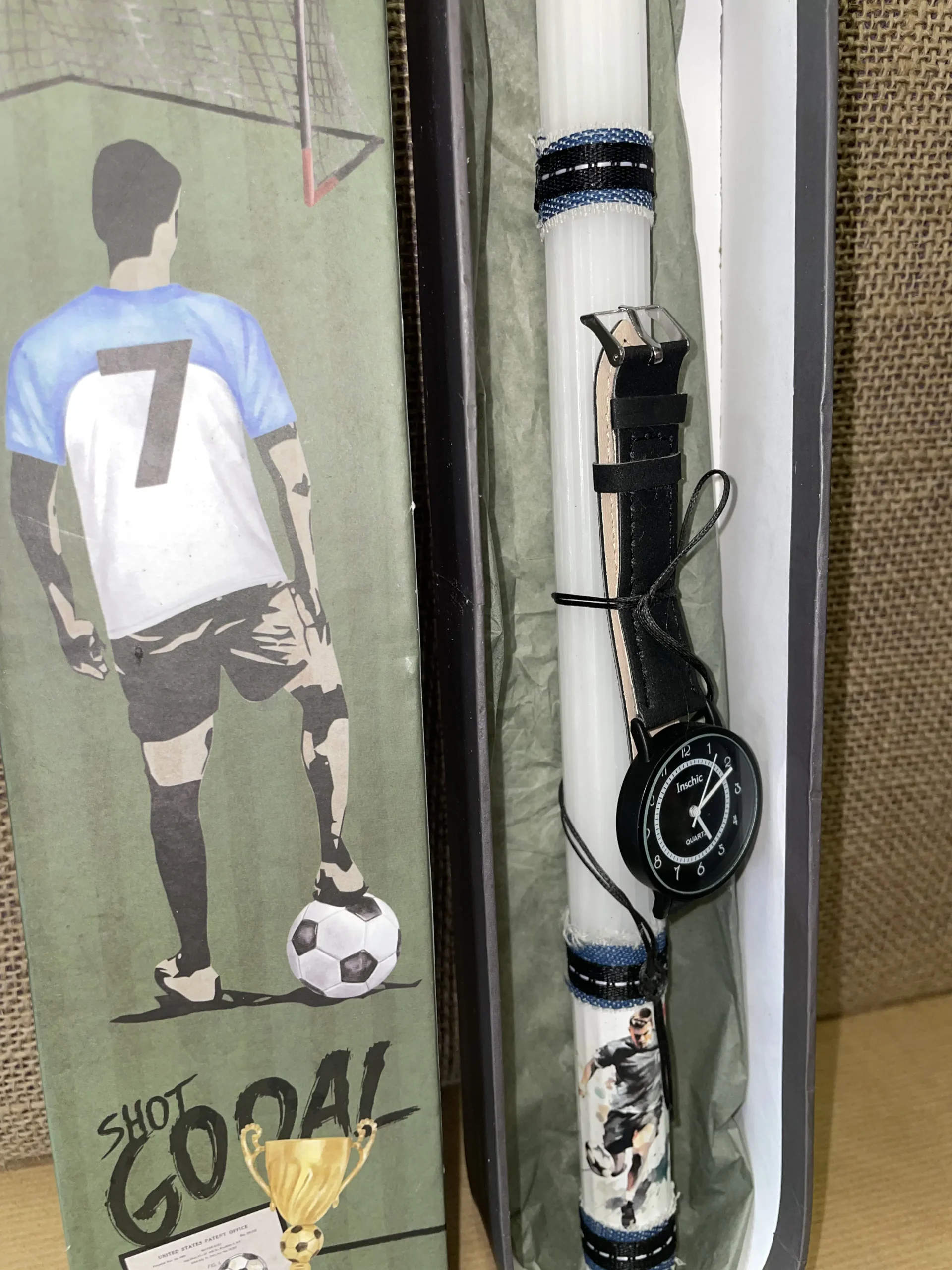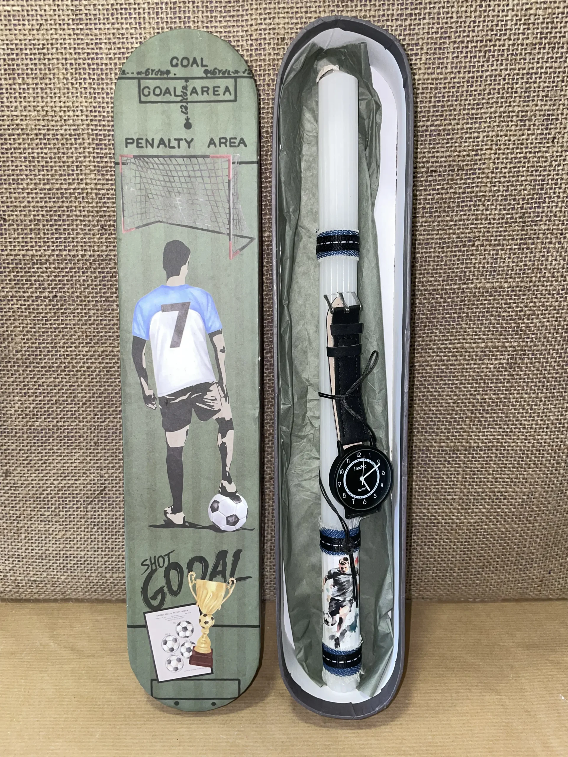 Λευκή με μαύρο στρογγυλή λαμπάδα με ρολόϊ χειρός μαύρο – ΠΑΟΚ