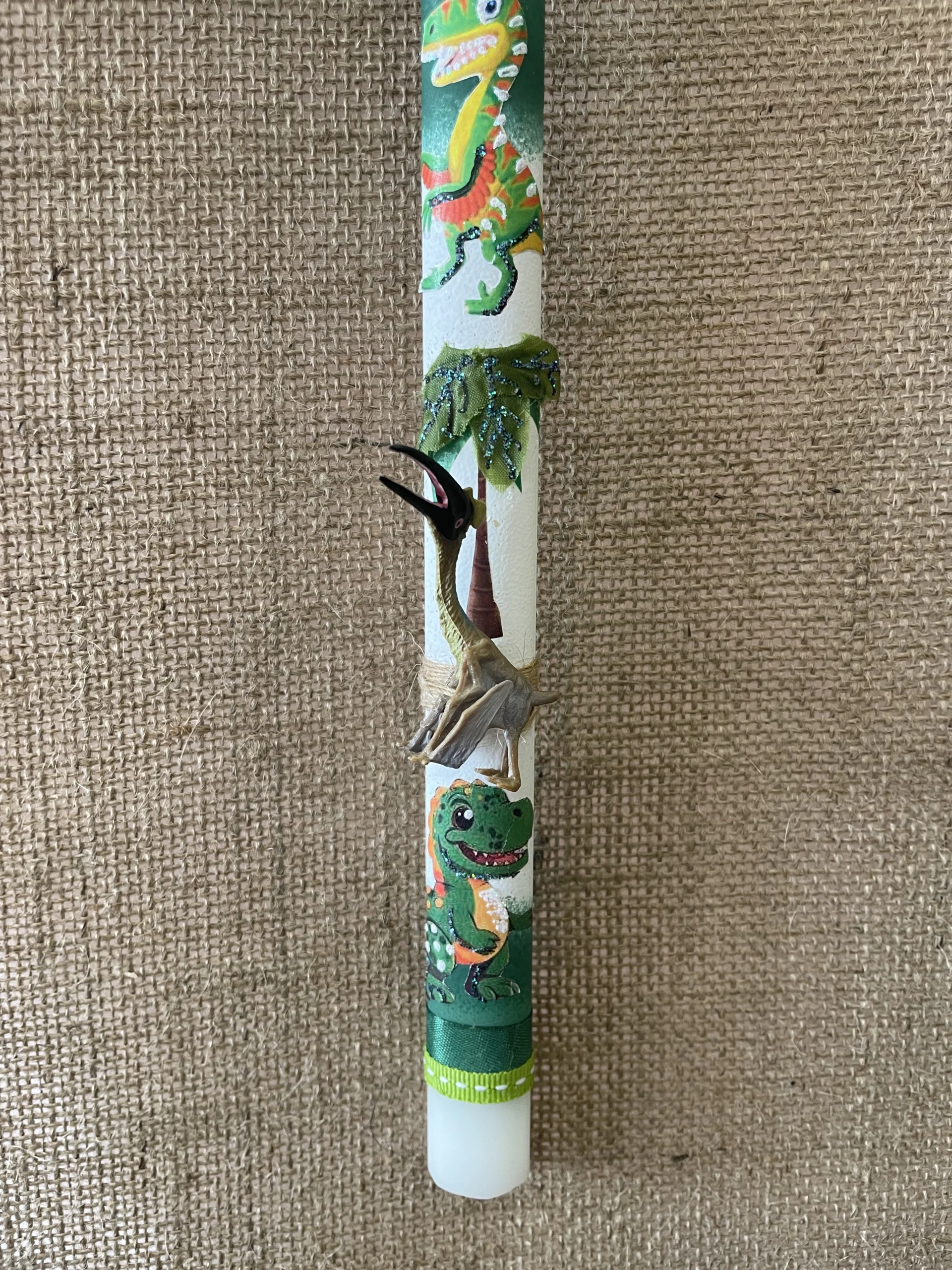 Το δεινοσαυράκι μπορεί να διαφέρει από την φωτογραφία. Το φόντο της λαμπάδας θα είναι πάντα ίδιο.