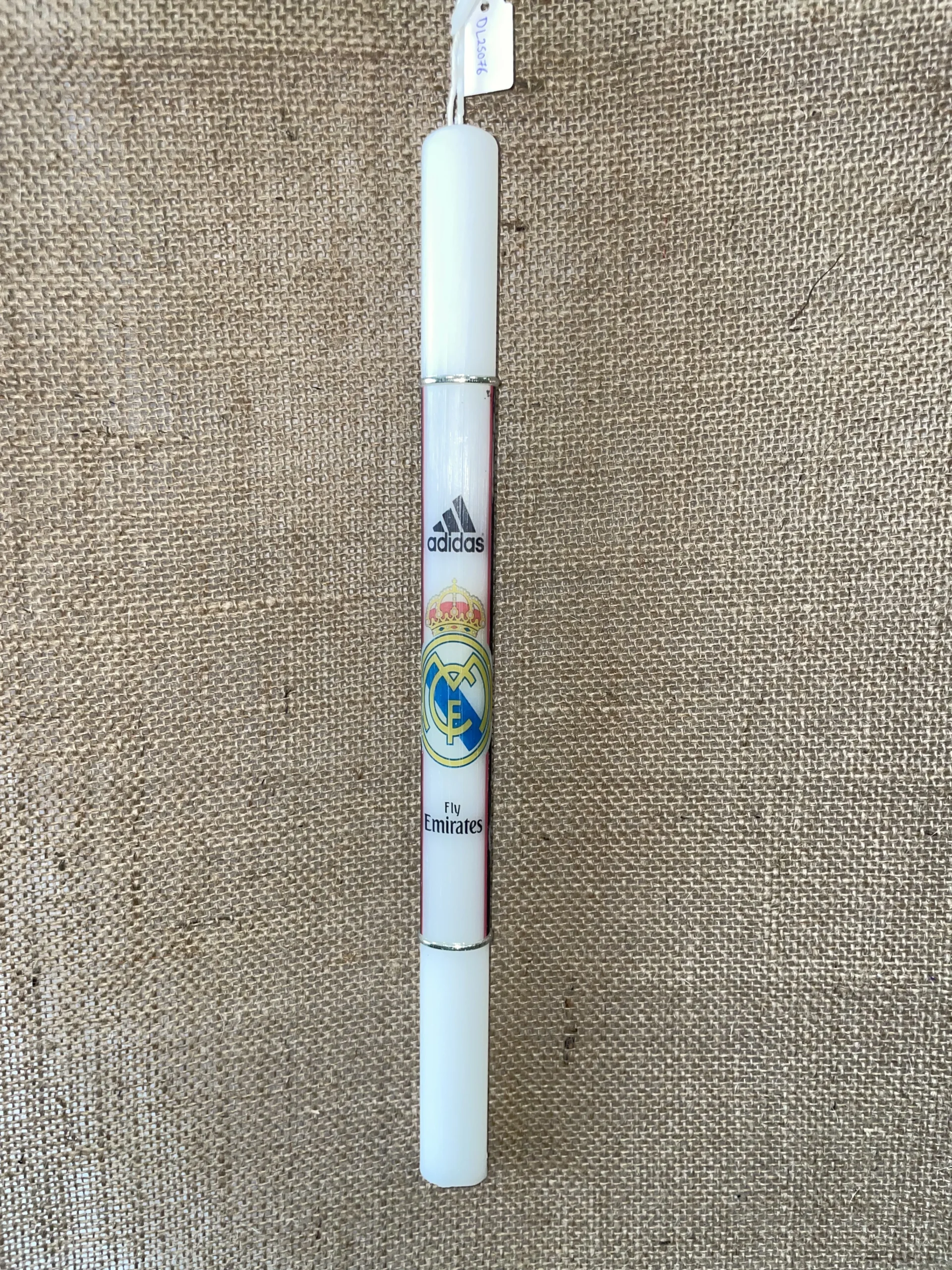 Ετικέτα: Λευκή οβάλ λαμπάδα με ντεκουπάζ Real Madrid