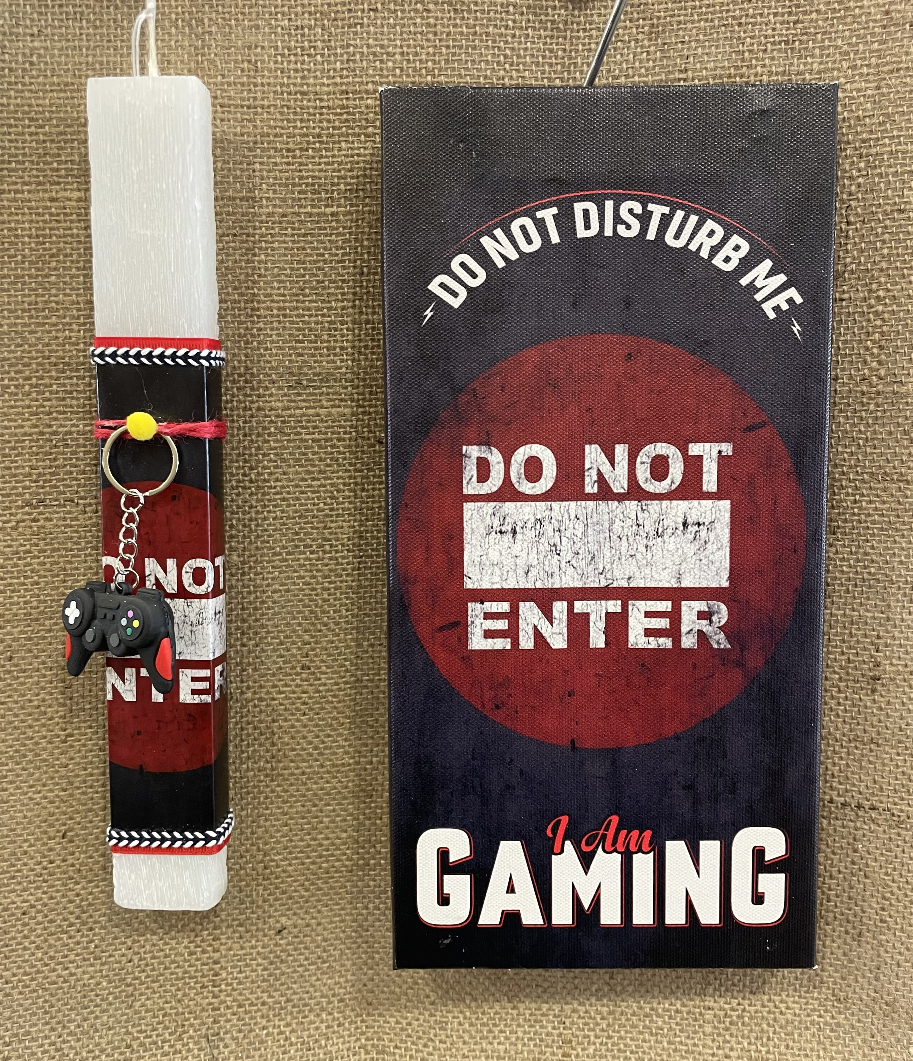 Ετικέτα: Λευκή πλακέ αρωματική λαμπάδα με Do not enter και ξύλινο καμβά με ίδιο θέμα