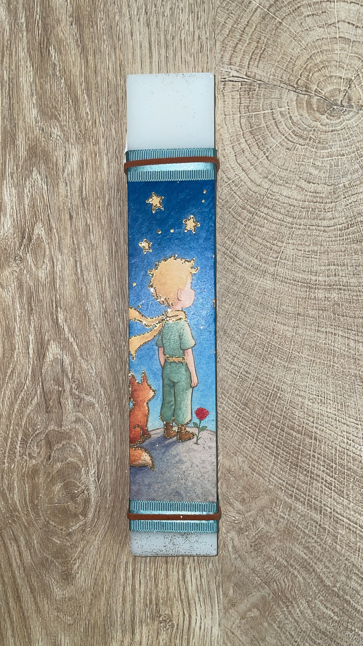 Λευκή πλακέ λαμπάδα με Μικρό Πρίγκηπα