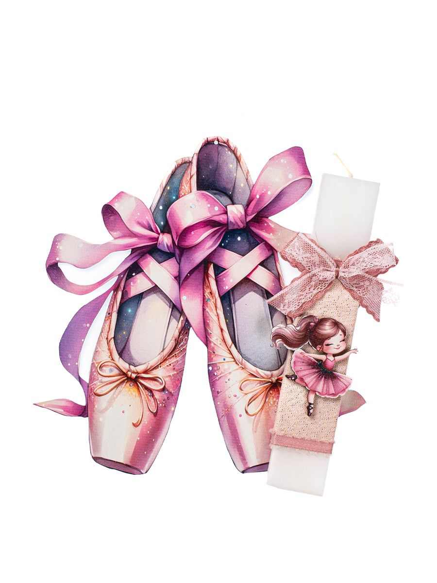 Λευκή πλακέ λαμπάδα με Μπαλαρίνα και ξύλινη πλάτη με πουέντ