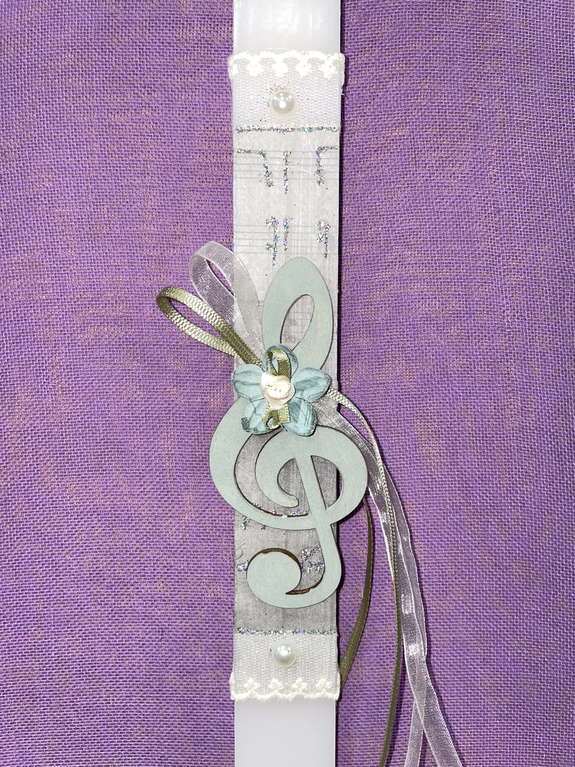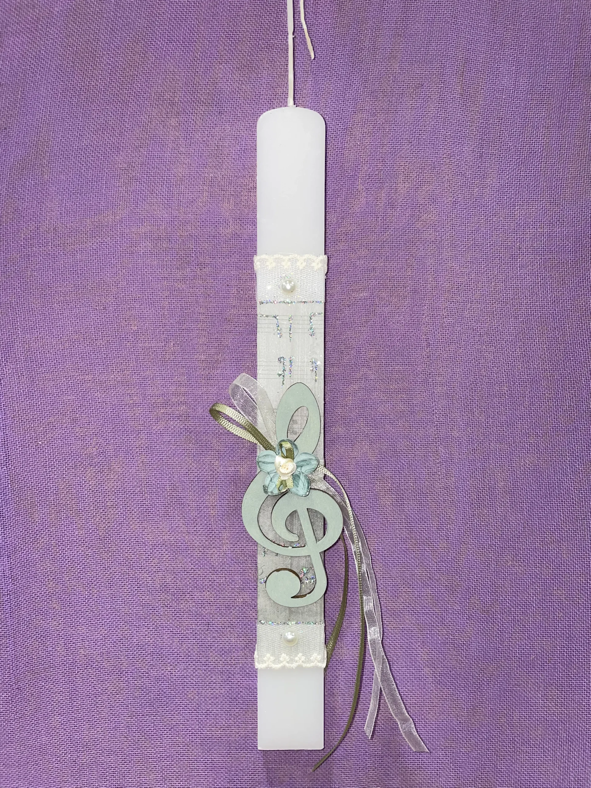 Λευκή πλακέ λαμπάδα με πράσινο κλειδί του σολ