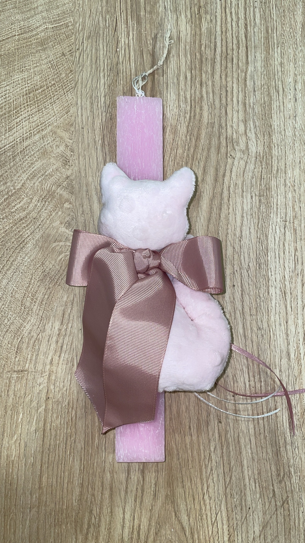 Ροζ πλακέ λαμπάδα με υφασμάτινο γατάκι