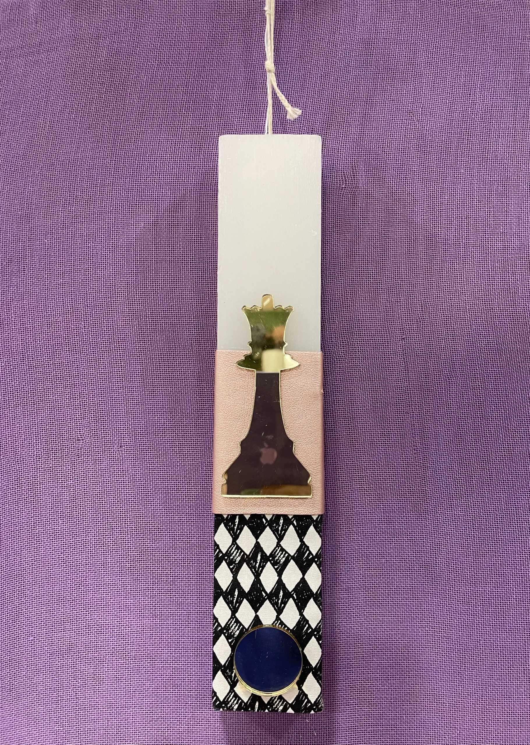 Λευκή πλακέ λαμπάδα με χρυσό plexiglass πιόνι σκακιού