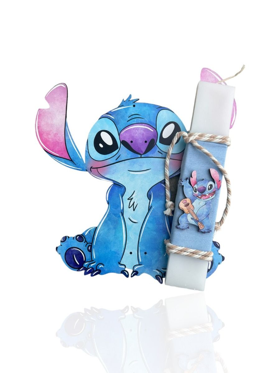 Ετικέτες: stitch guitar, Λευκή πλακέ λαμπάδα με Stitch Guitar, με ξύλινη πλάτη, πασχαλινή λαμπάδα