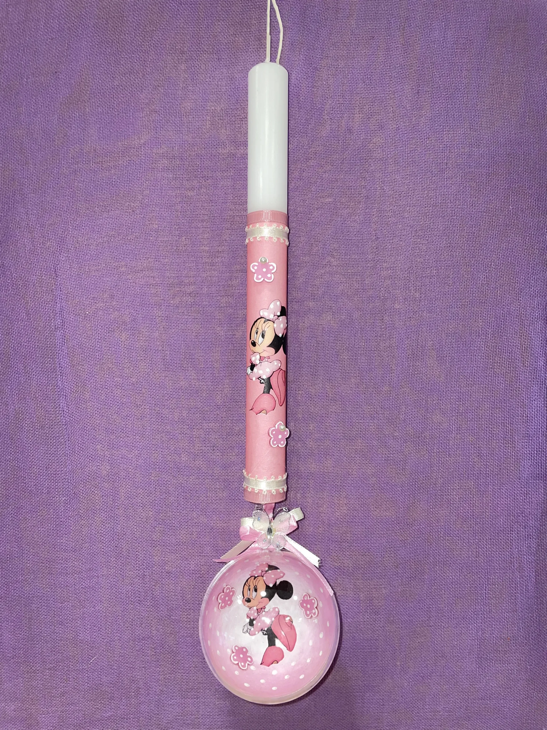 Ετικέτα: Λευκή στρογγυλή λαμπάδα και κρεμαστή μπάλα Minnie