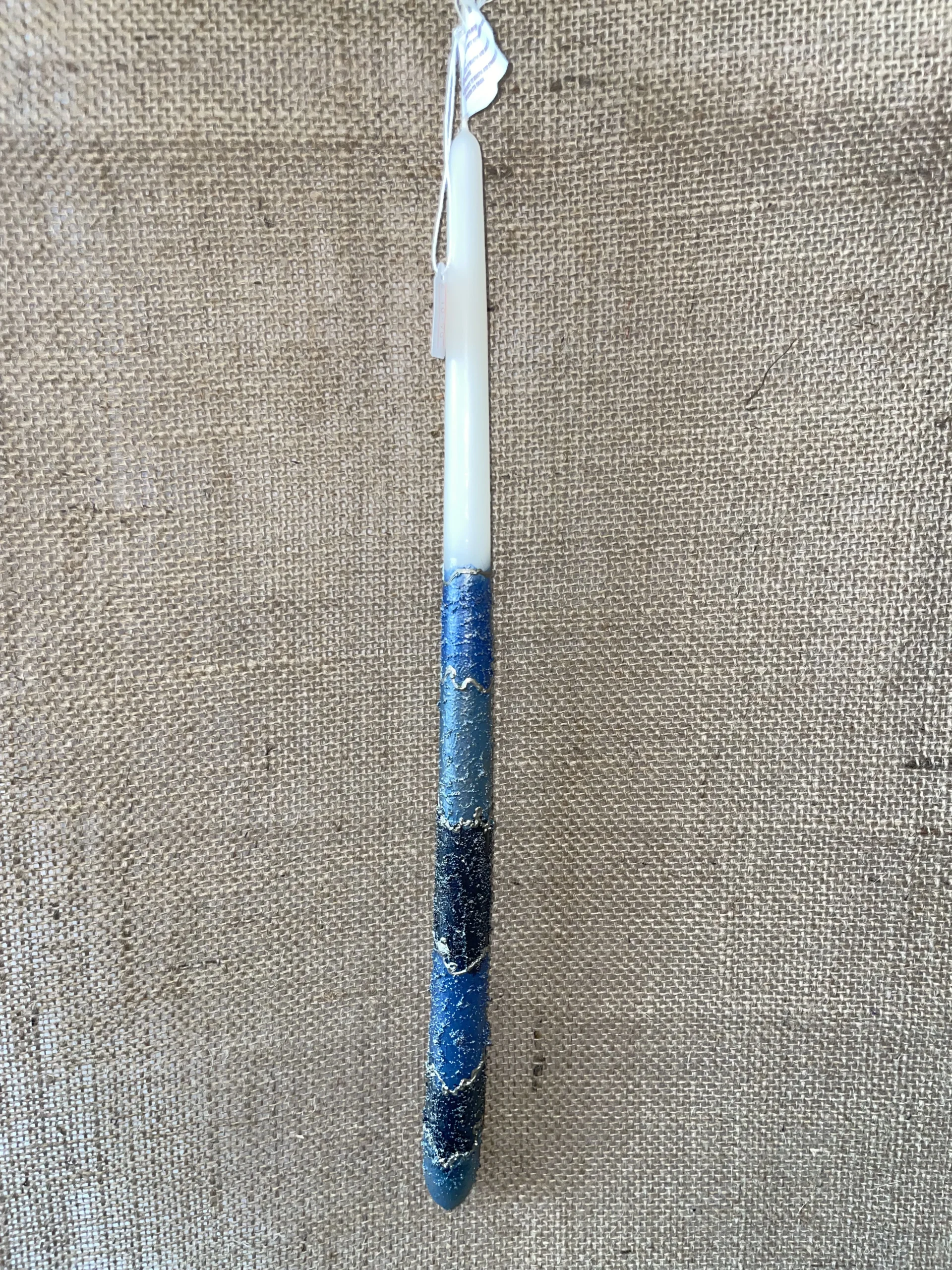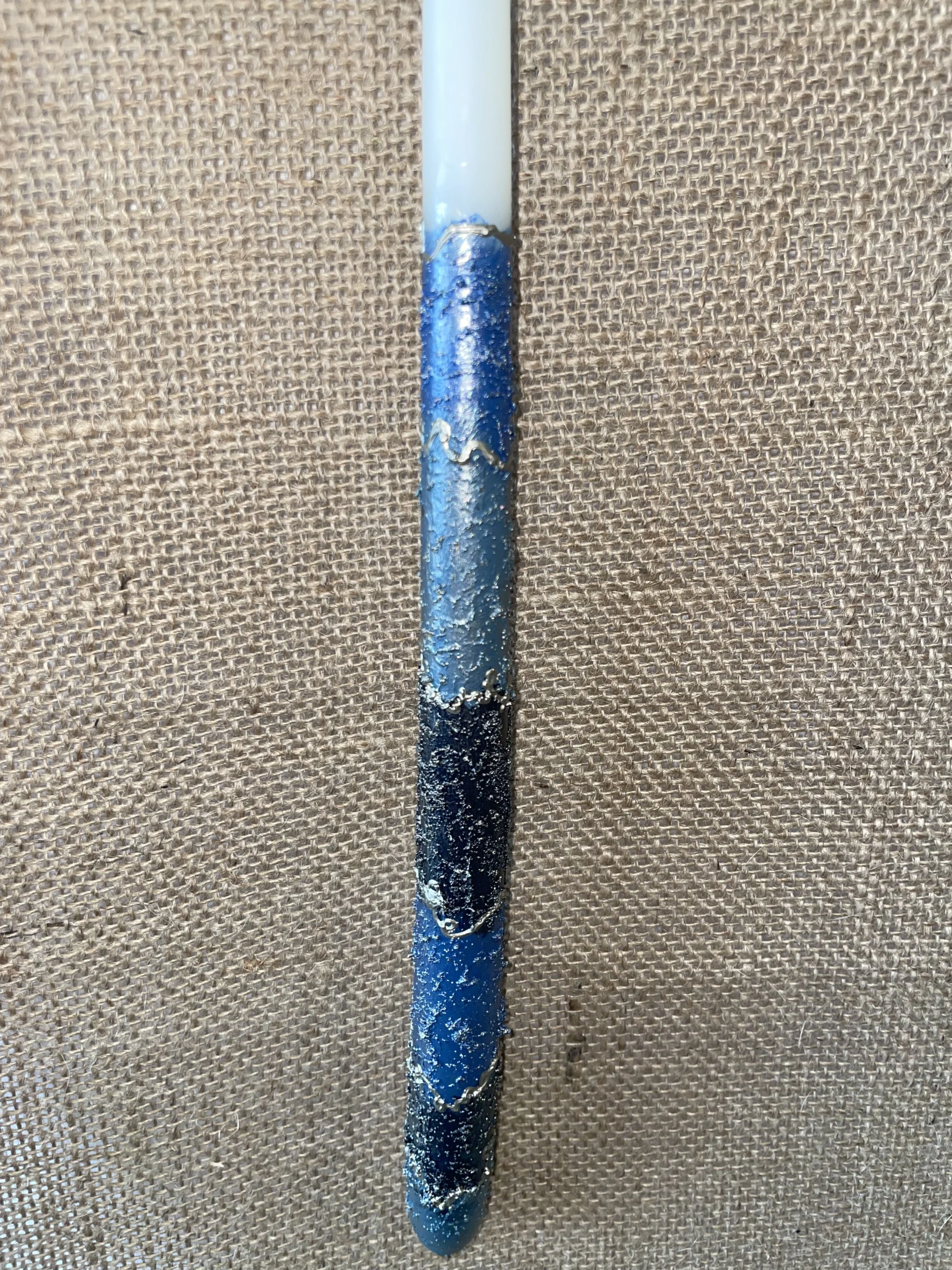 Ετικέτα: Λευκή στρογγυλή λαμπάδα με ανάγλυφο σκούρο μπλε & γαλάζιο