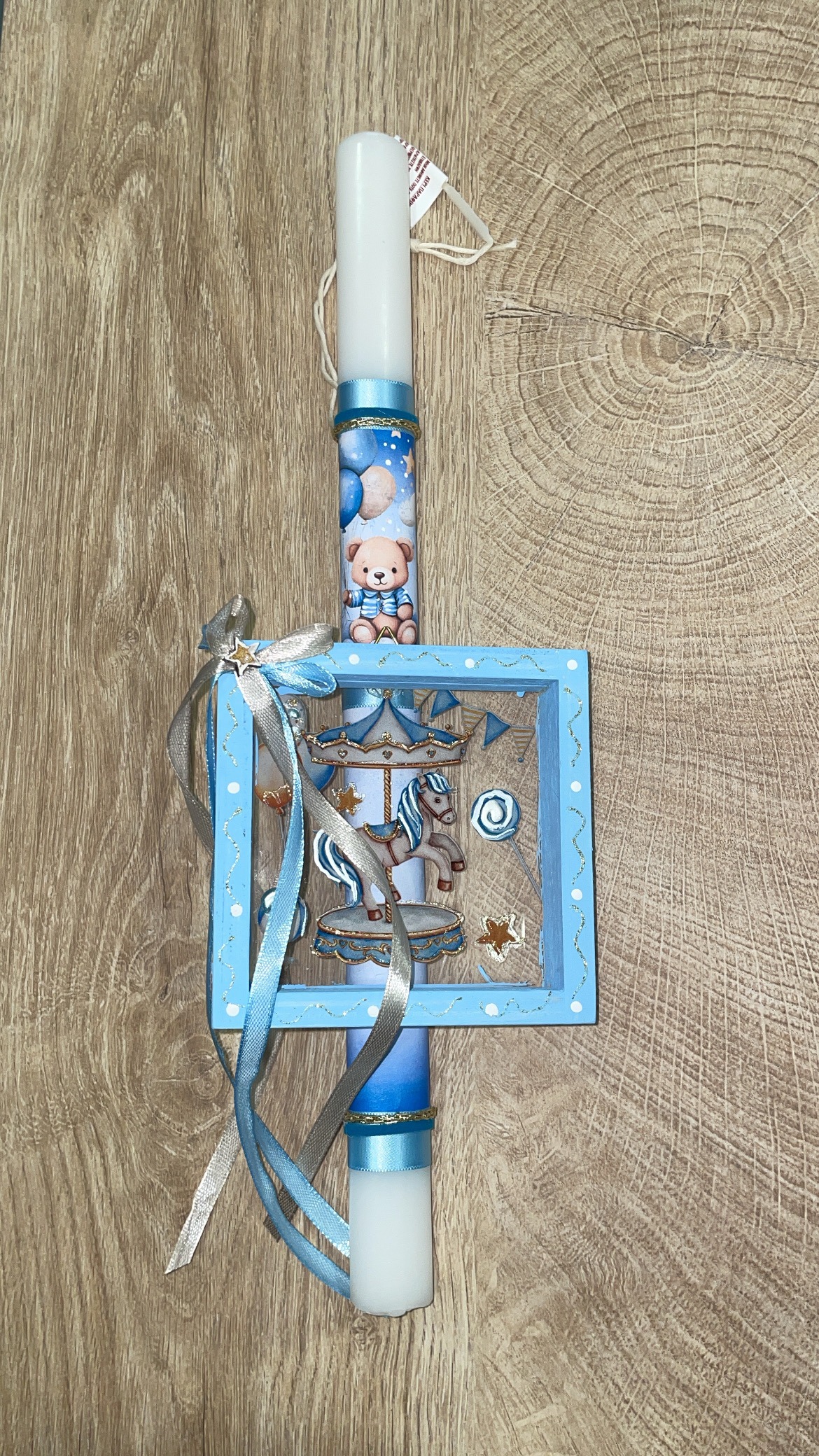 Tag: Λευκή στρογγυλή λαμπάδα με γαλάζιο καδράκι με καρουζέλ