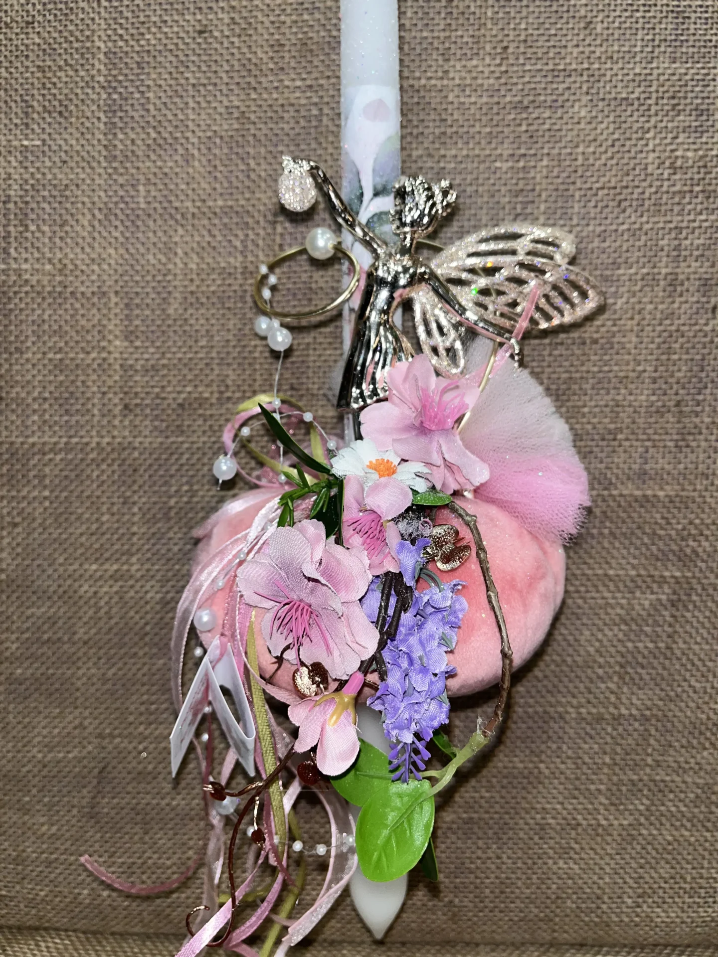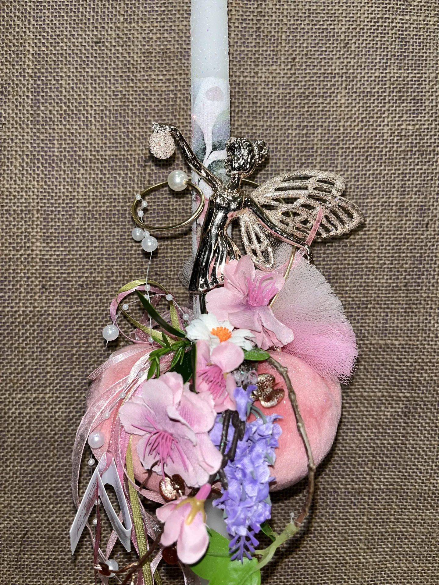 Ετικέτα: Λευκή στρογγυλή λαμπάδα με κολοκύθα και χρυσή νεράϊδα