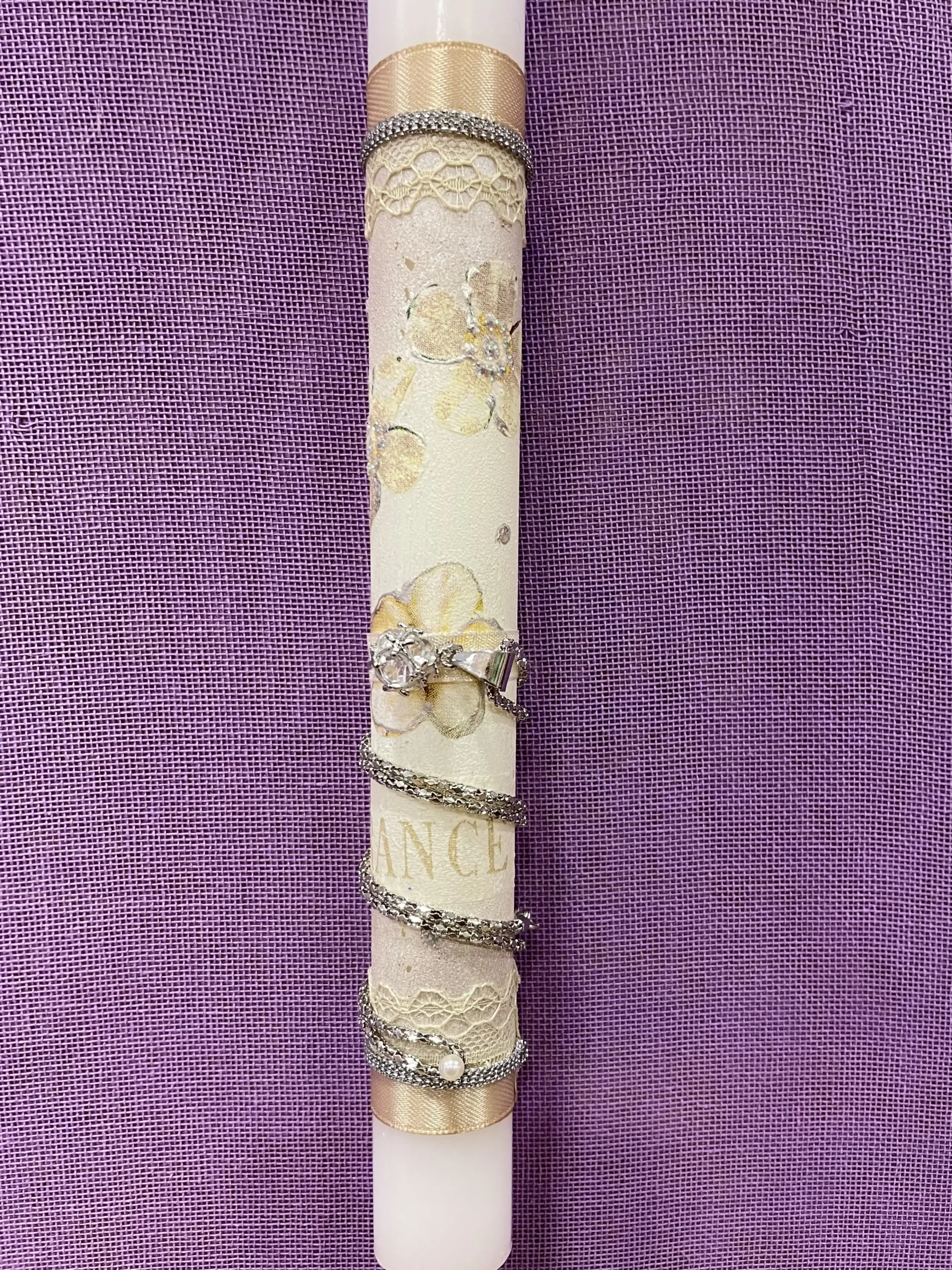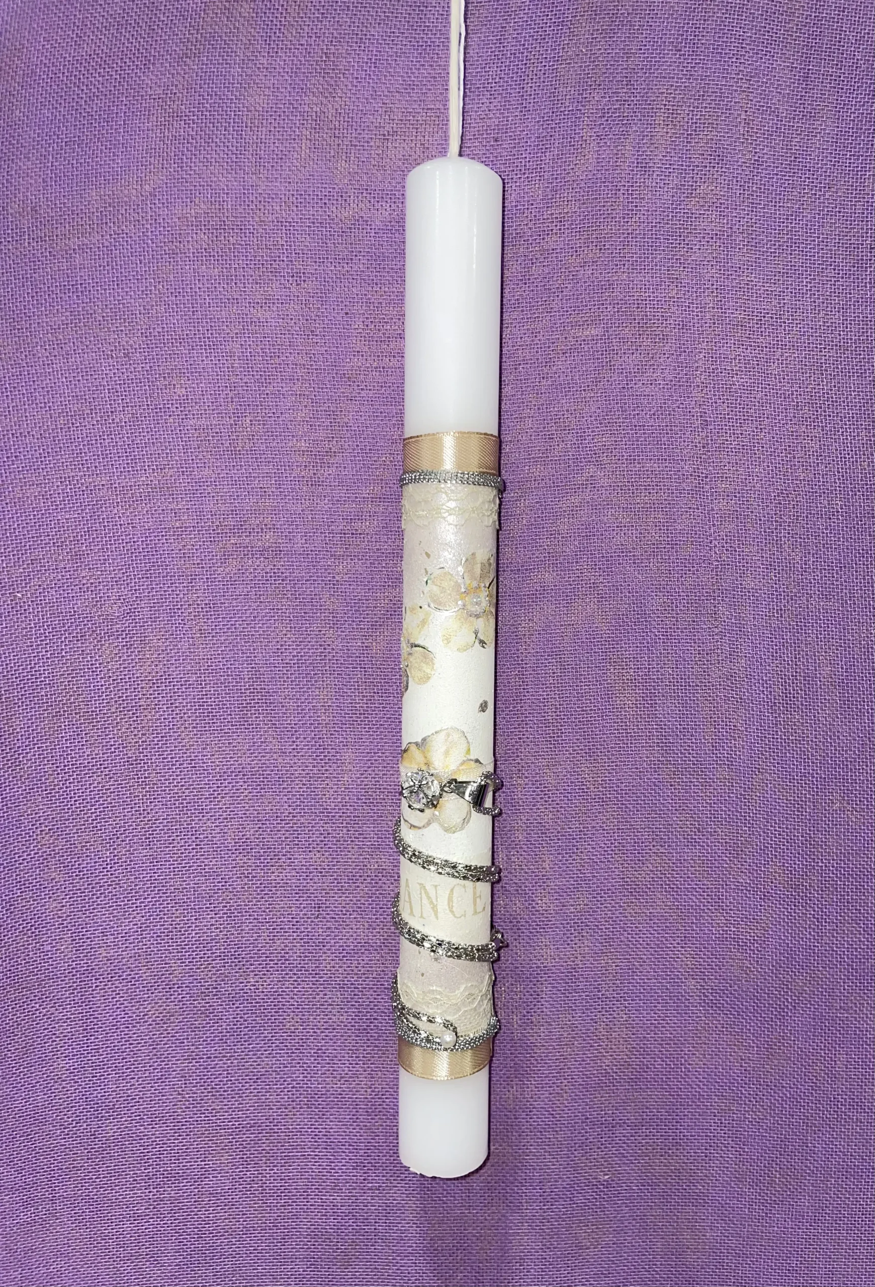 Ετικέτα: Λευκή στρογγυλή λαμπάδα με λουλούδια και ασημένιο μενταγιόν