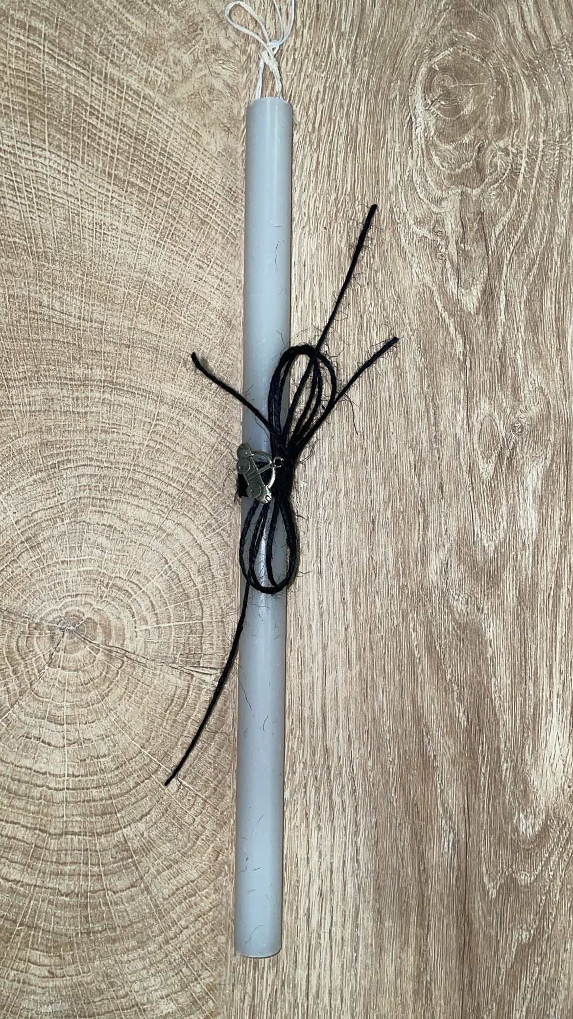 Λευκή στρογγυλή λαμπάδα με μεταλλικό αυτοκινητάκι