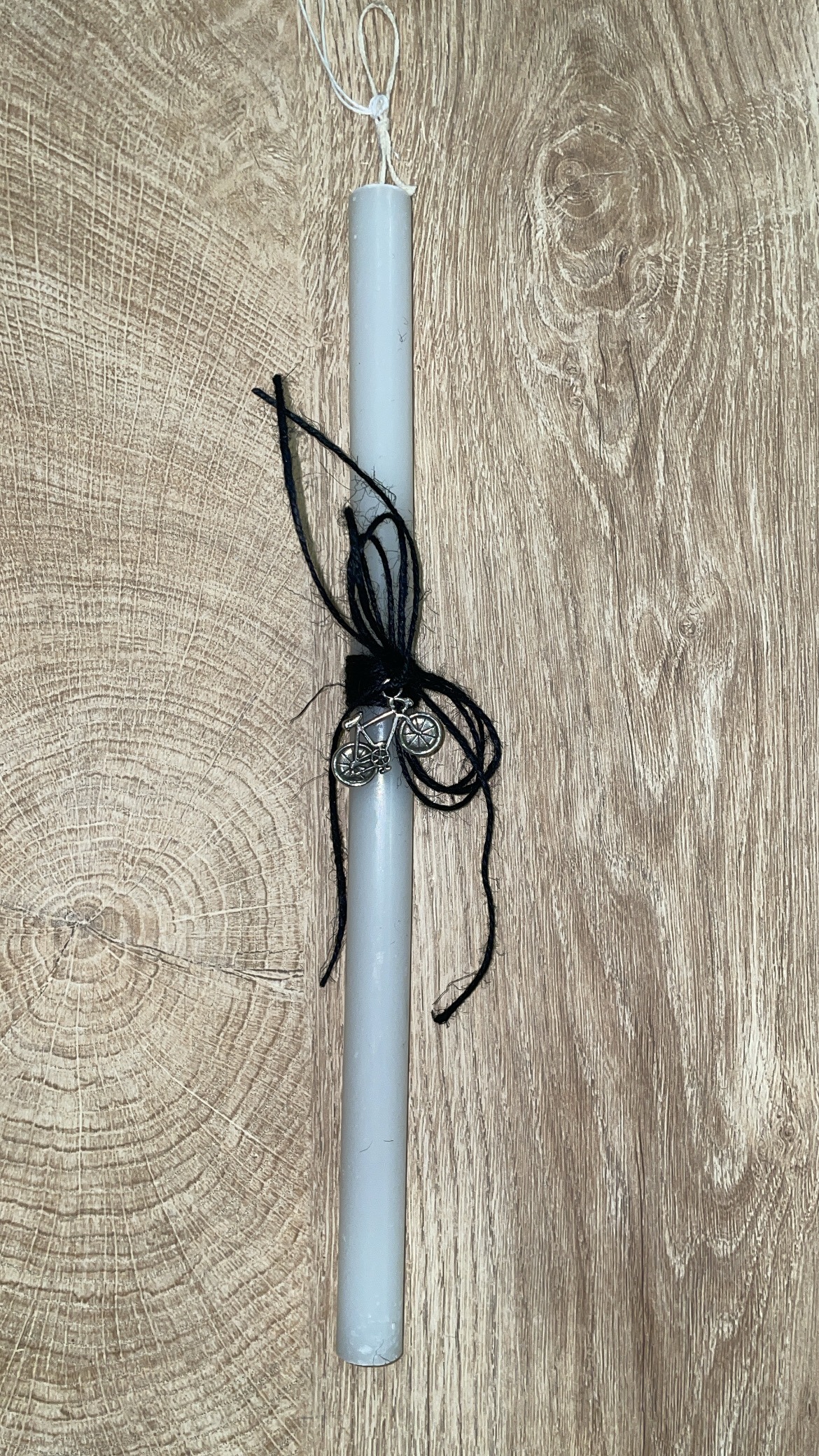 Λευκή στρογγυλή λαμπάδα με μεταλλικό ποδηλατάκι