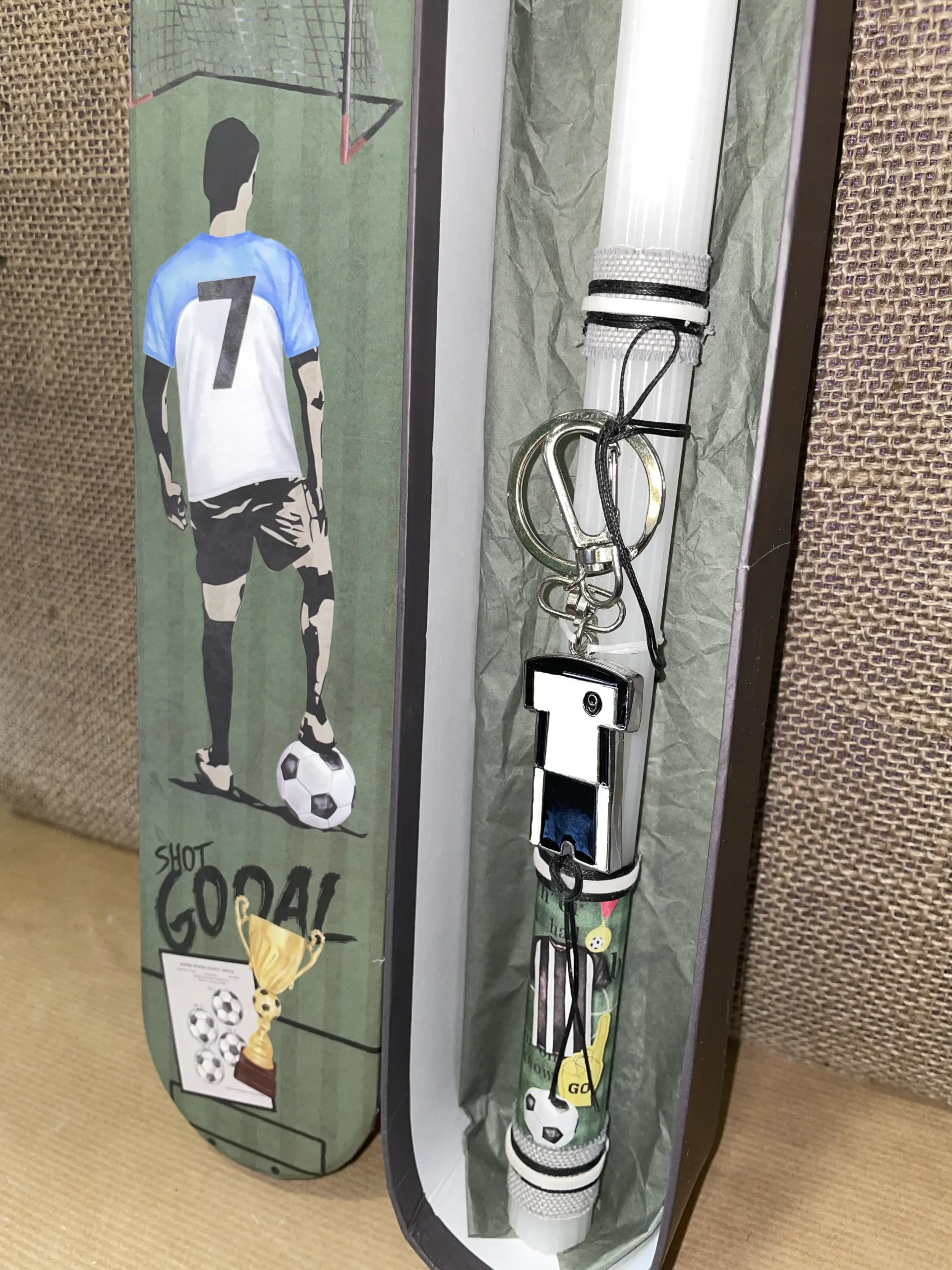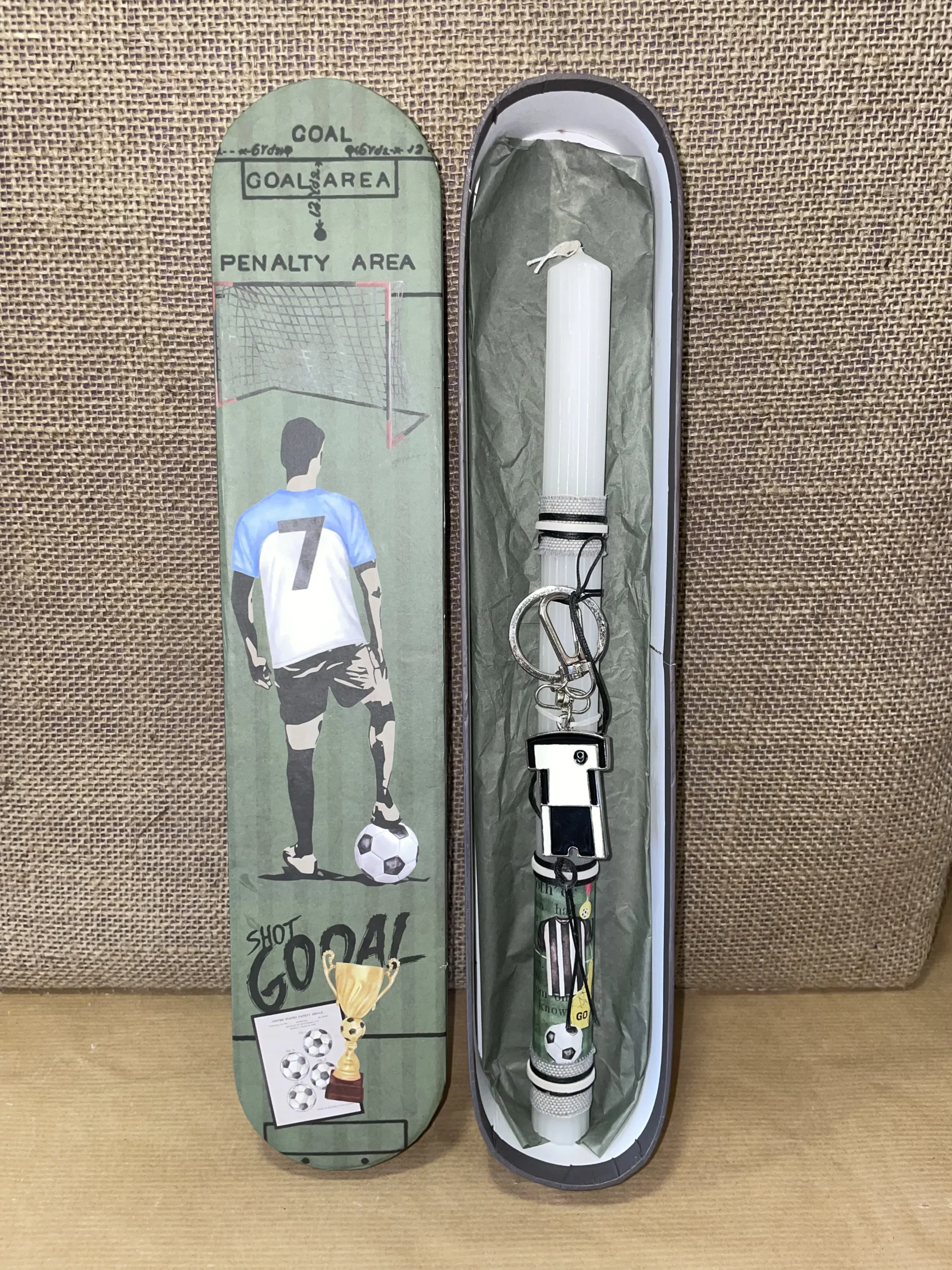 Λευκή στρογγυλή λαμπάδα με μπρελόκ μαύρη φανέλα – ΠΑΟΚ