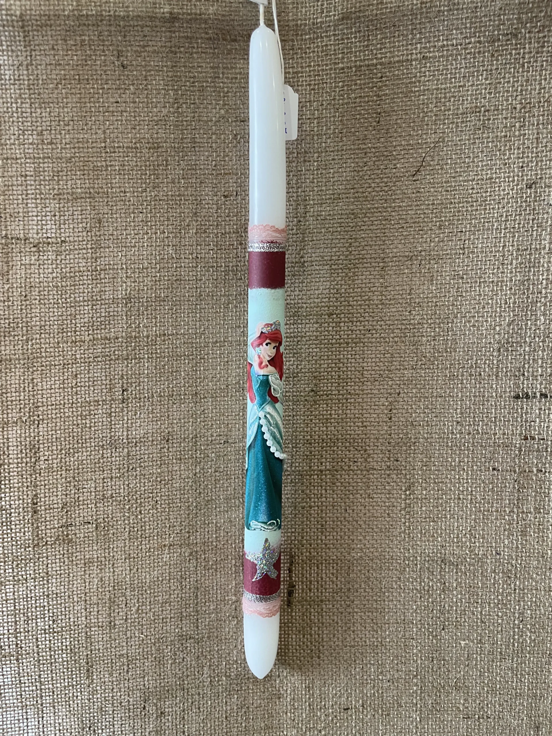 Λευκή στρογγυλή λαμπάδα με ντεκουπάζ την Αριέλ την Γοργόνα