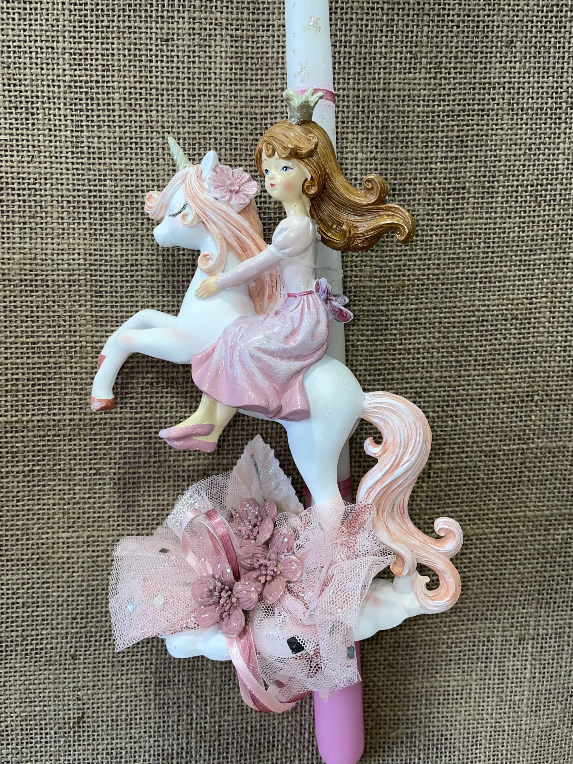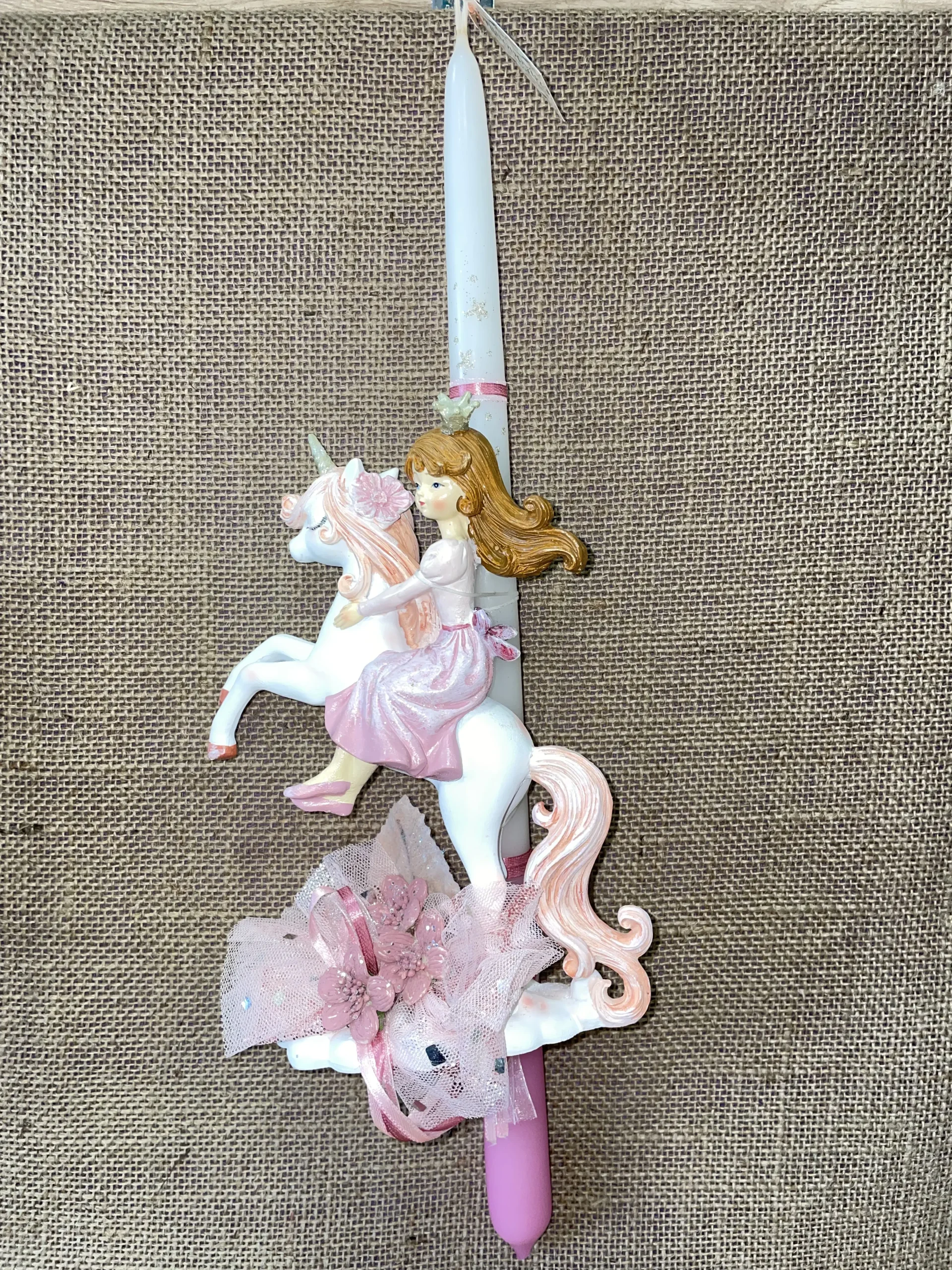 Ετικέτα: Λευκή στρογγυλή λαμπάδα με πριγκίπισσα πάνω σε μονόκερο