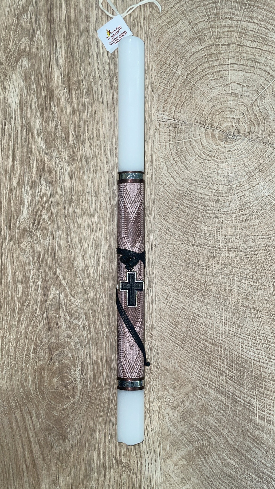 Tag: Λευκή στρογγυλή λαμπάδα με σταυρό και δερματίνη για τον λαιμό