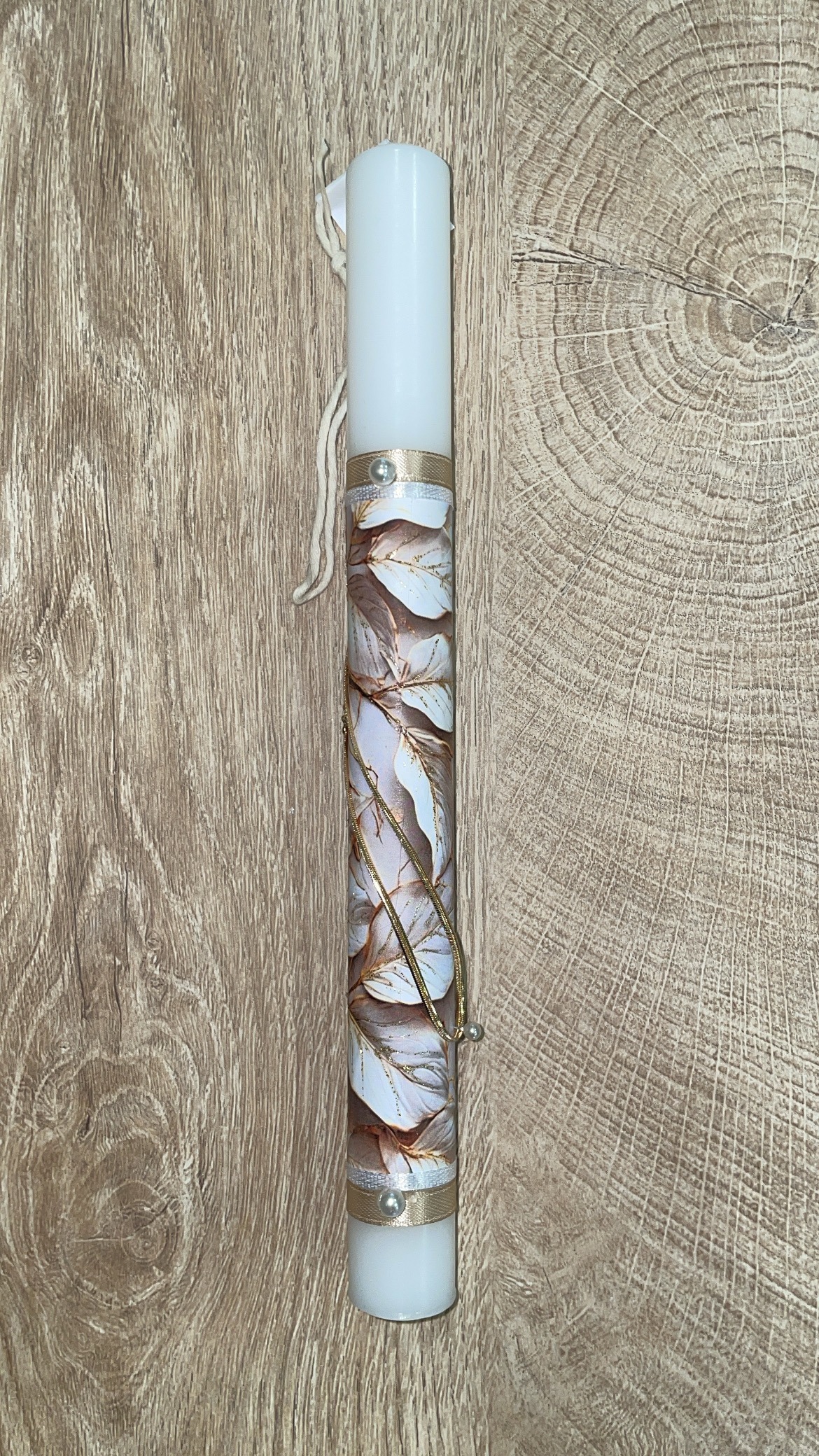 Tag: Λευκή στρογγυλή λαμπάδα με χρυσή αλυσίδα ποδιού