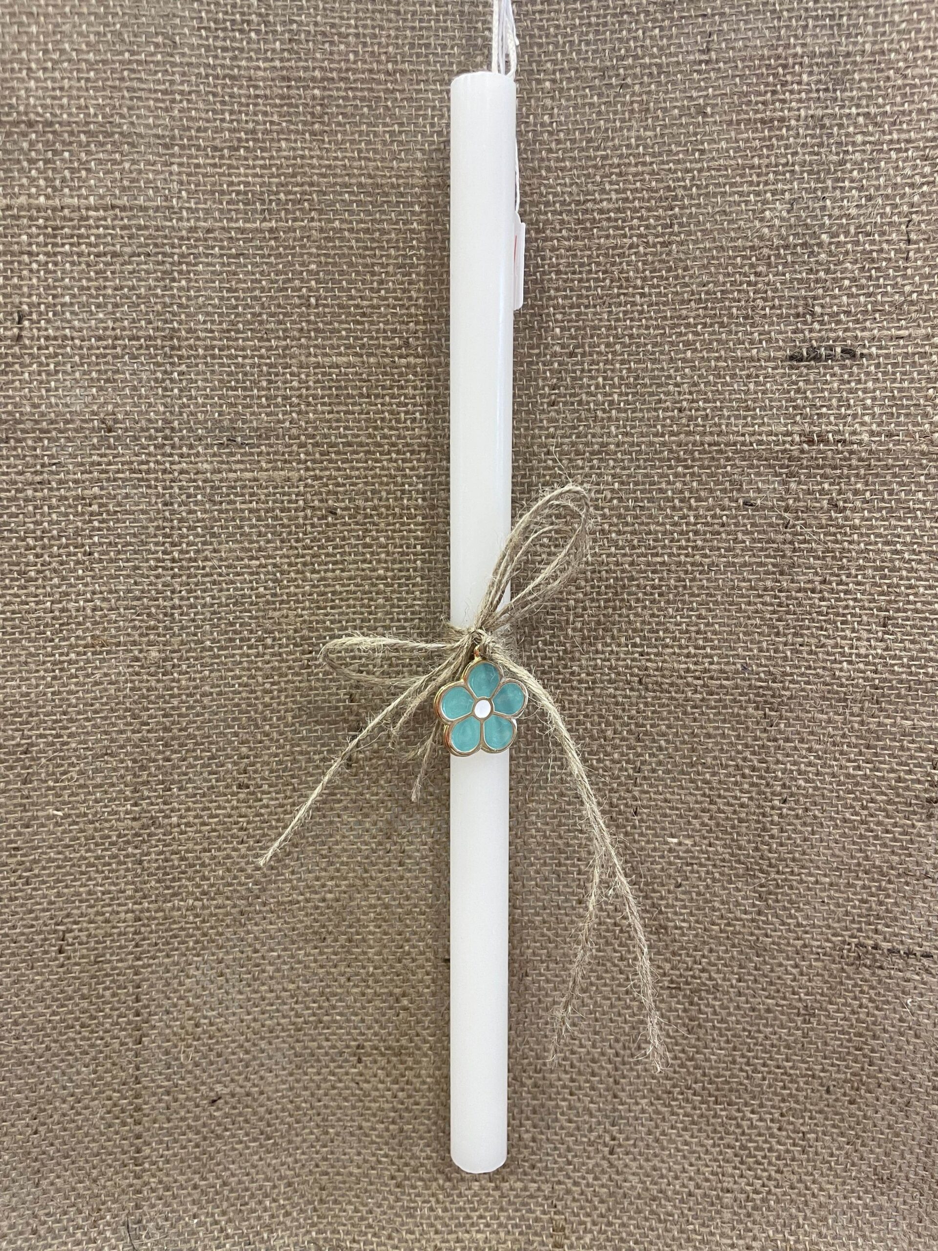 Ετικέτα: Λευκή τετράγωνη λαμπάδα με κρεμαστή μεταλλική μαργαρίτα μέντα