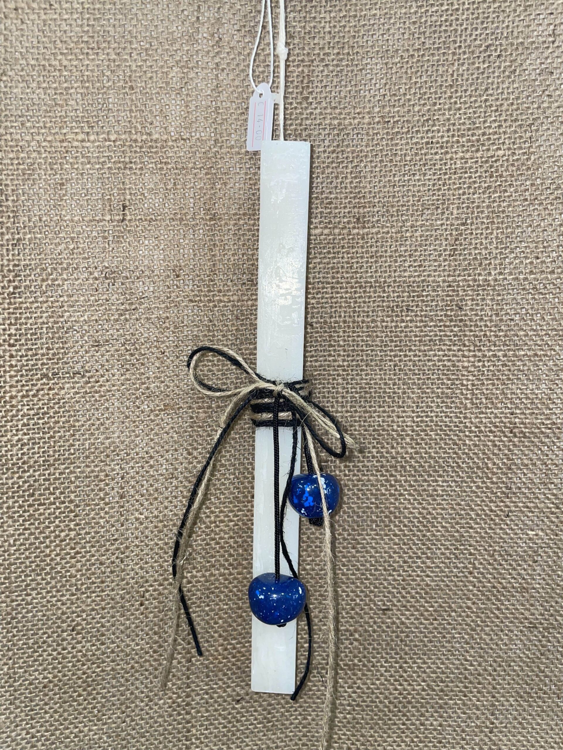 Ετικέτα: Λευκή τετράγωνη λαμπάδα με μπεγλέρι μπλε