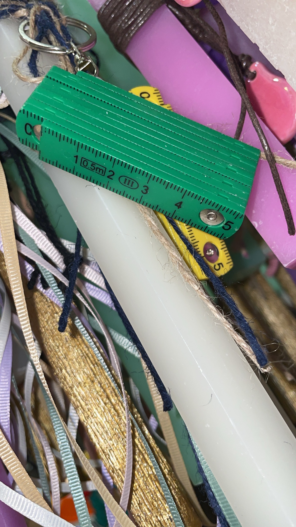 Λευκή τετράγωνη λαμπάδα με μπρελόκ κανονικό πράσινο μέτρο ξύλινο