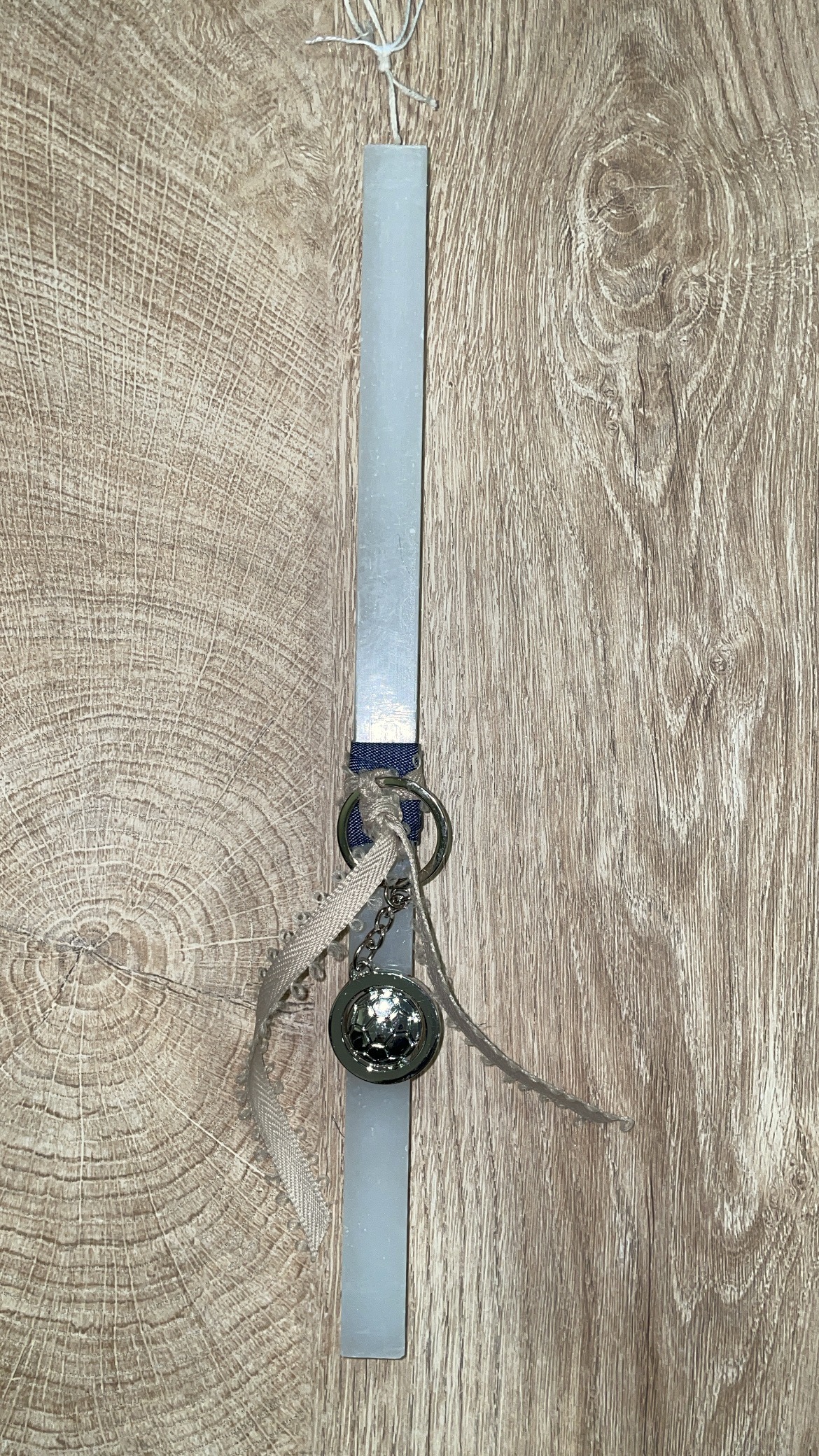 Λευκή τετράγωνη λαμπάδα με μπρελόκ μπάλα ποδοσφαίρου