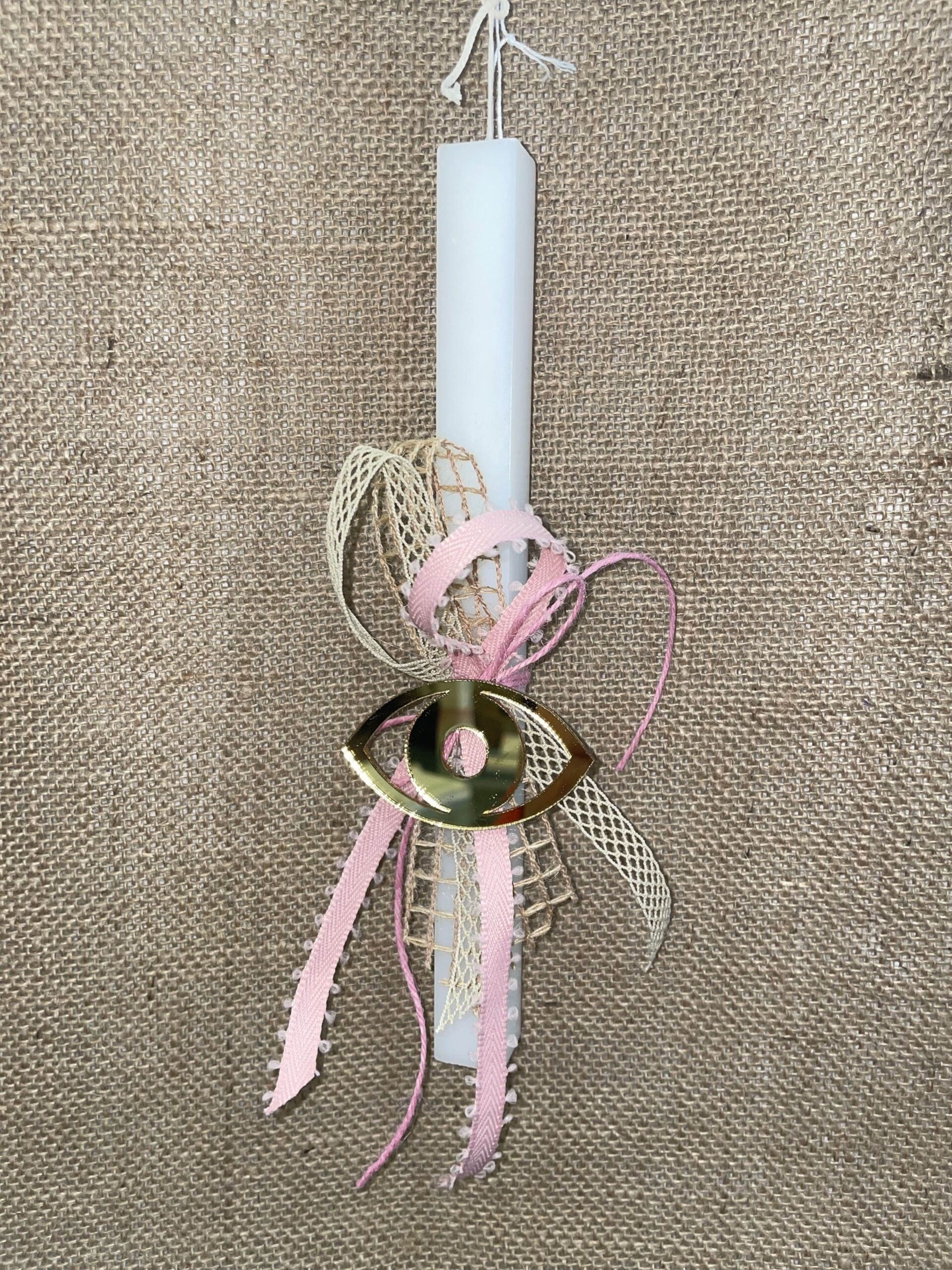 Ετικέτα: Λευκή τετράγωνη λαμπάδα με χρυσό plexiglass ματάκι
