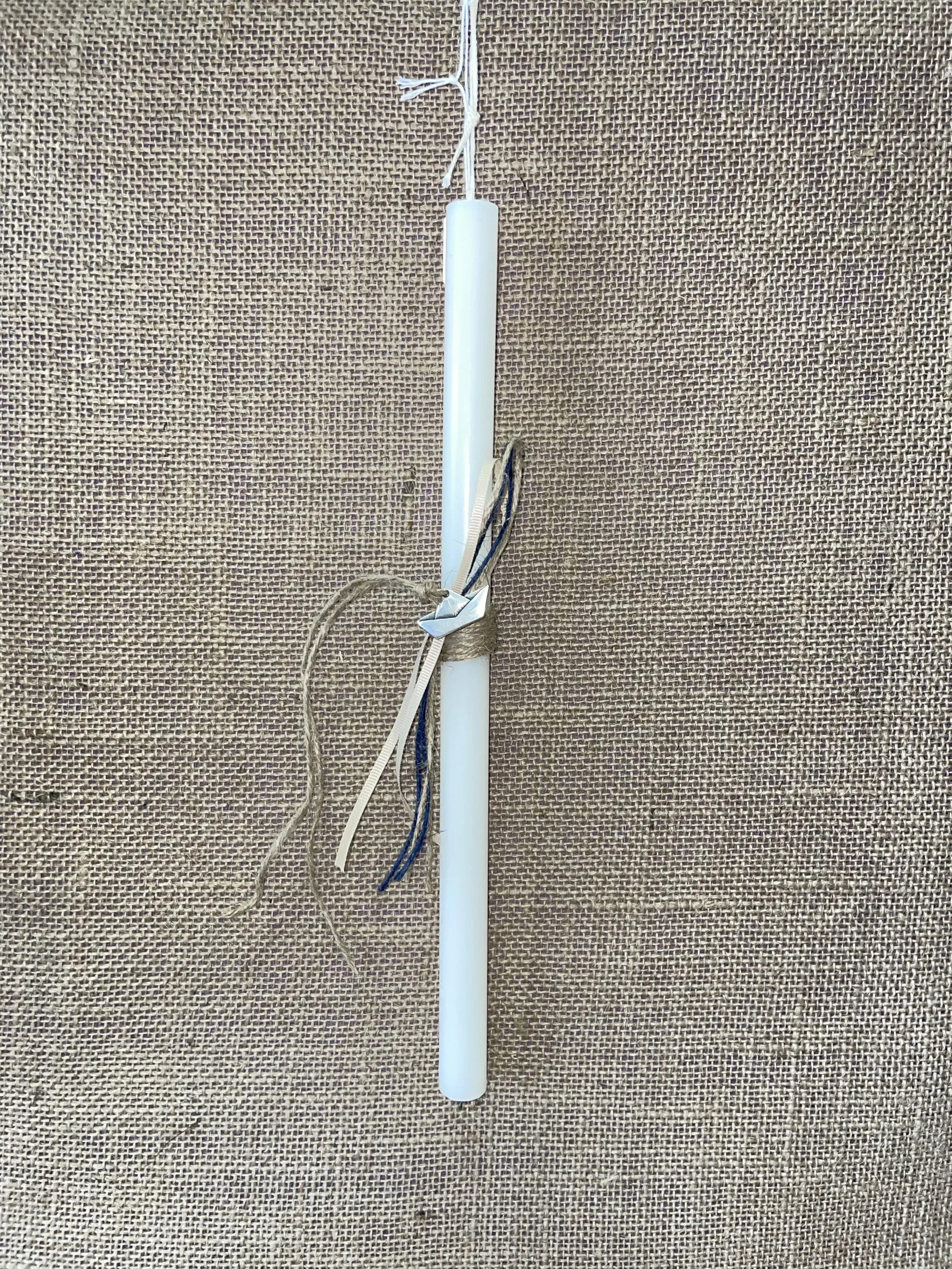 Λευκό στρογγυλό λαμπαδάκι με μεταλλικό καράβι