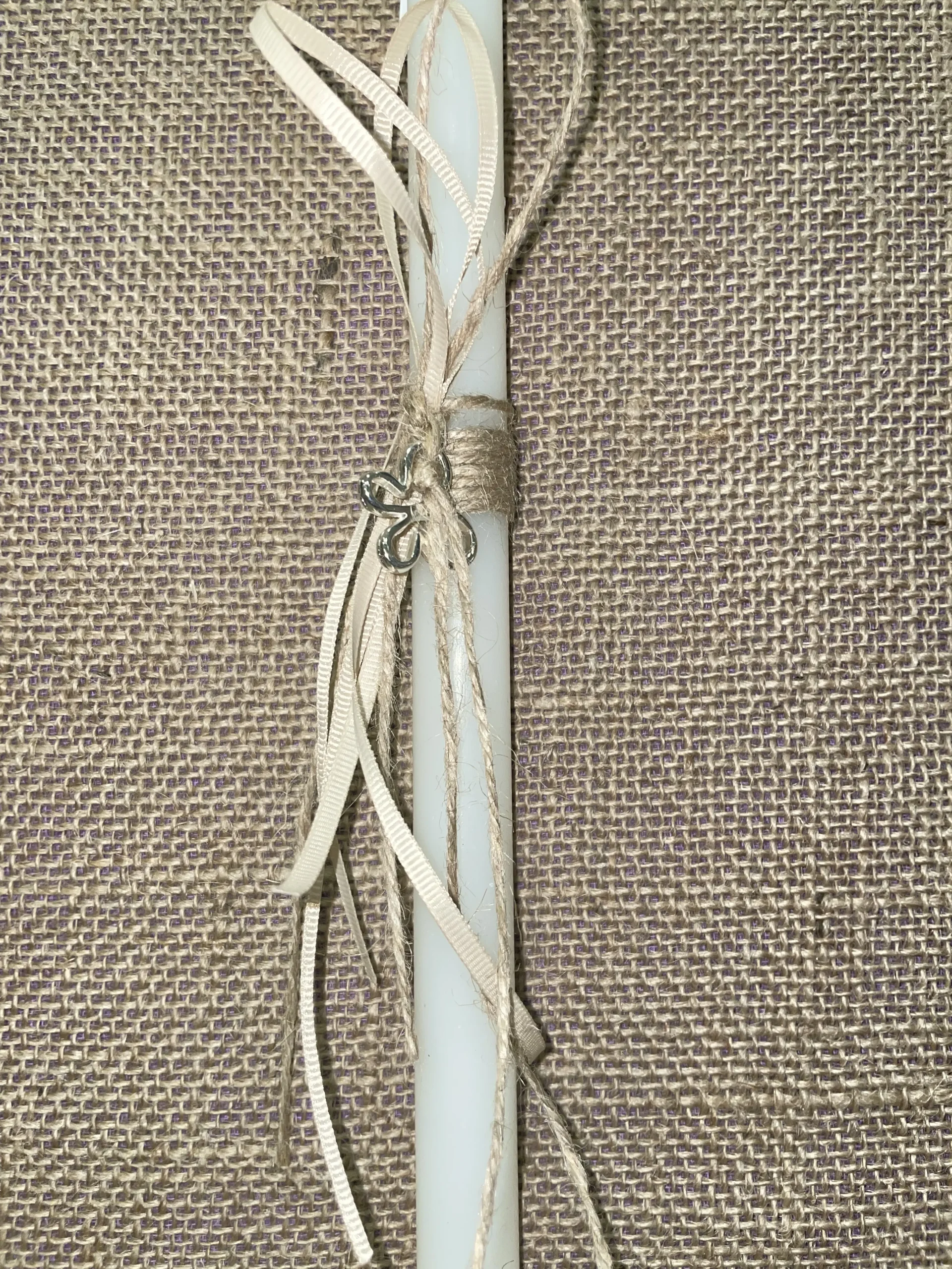 Λευκό στρογγυλό λαμπαδάκι με μεταλλική πεταλούδα