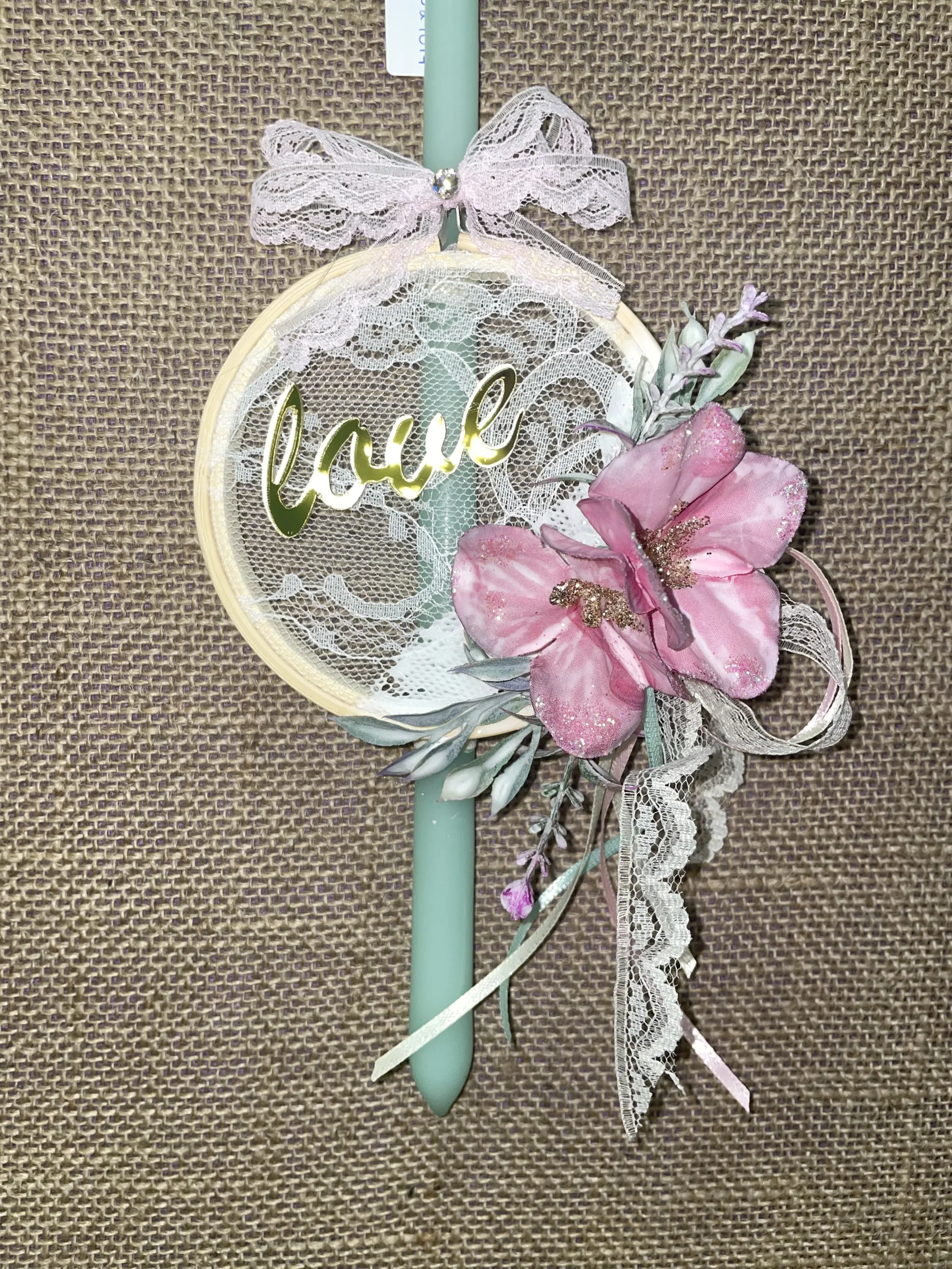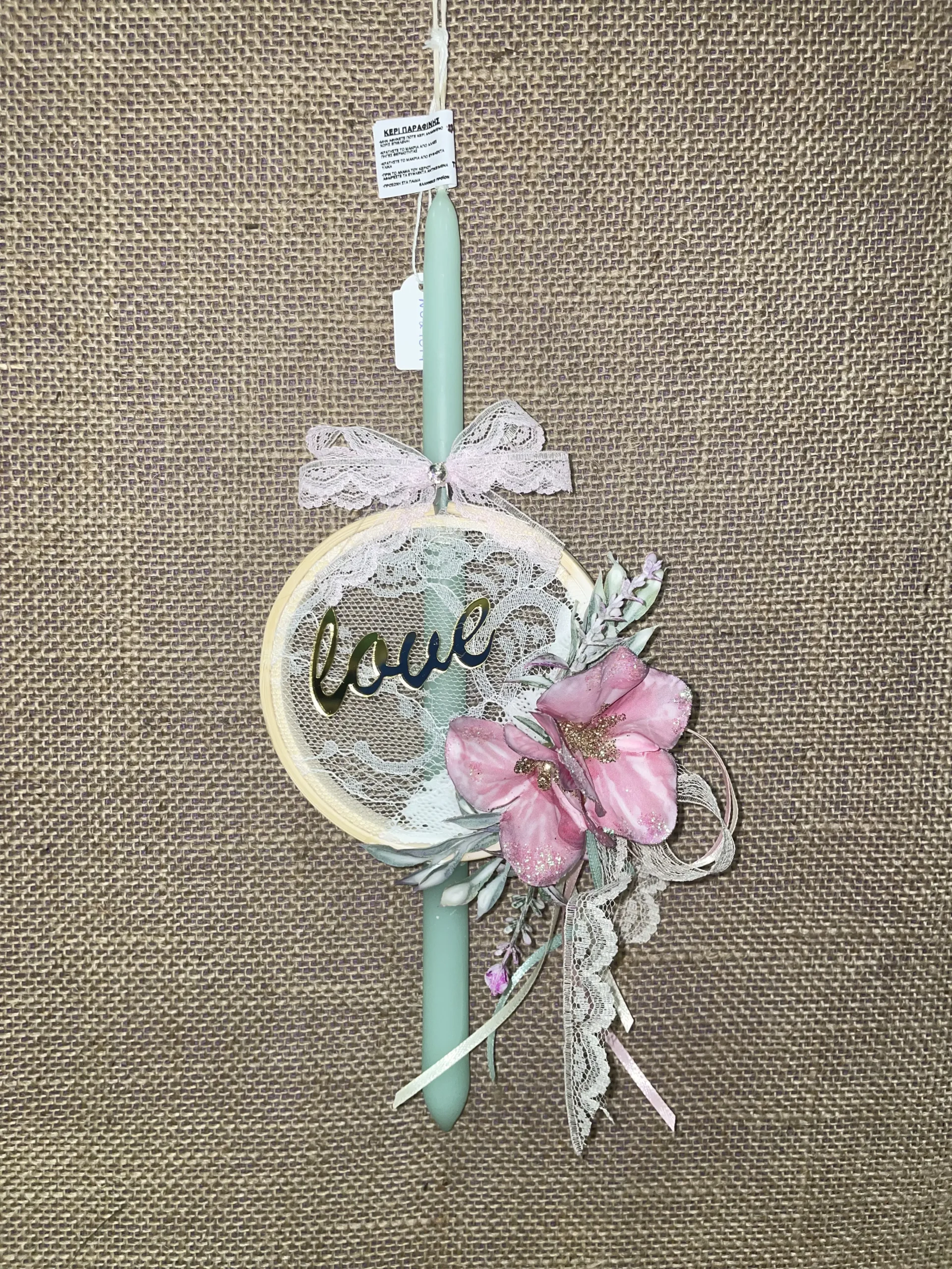 Ετικέτα: Μέντα στρογγυλό αρωματικό λαμπαδάκι με ξύλινο τελάρο με ''Love'' plexiglass